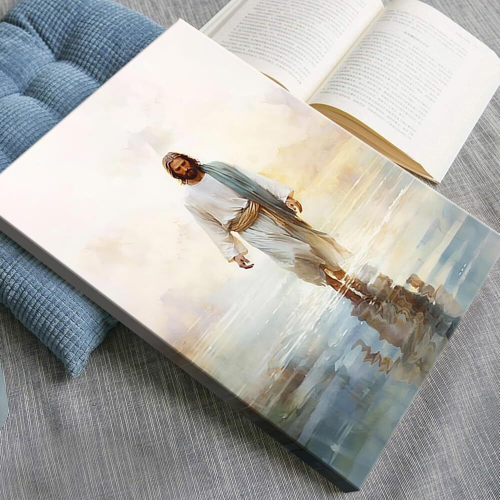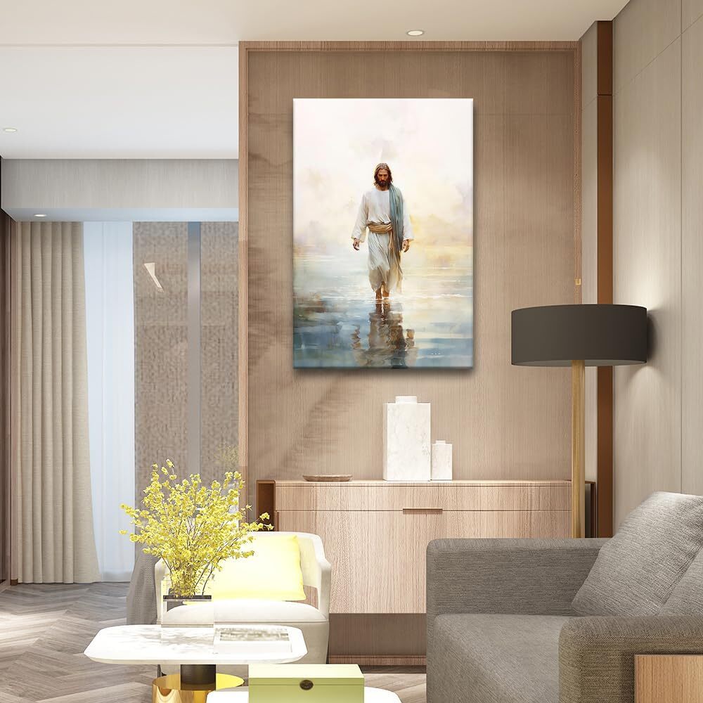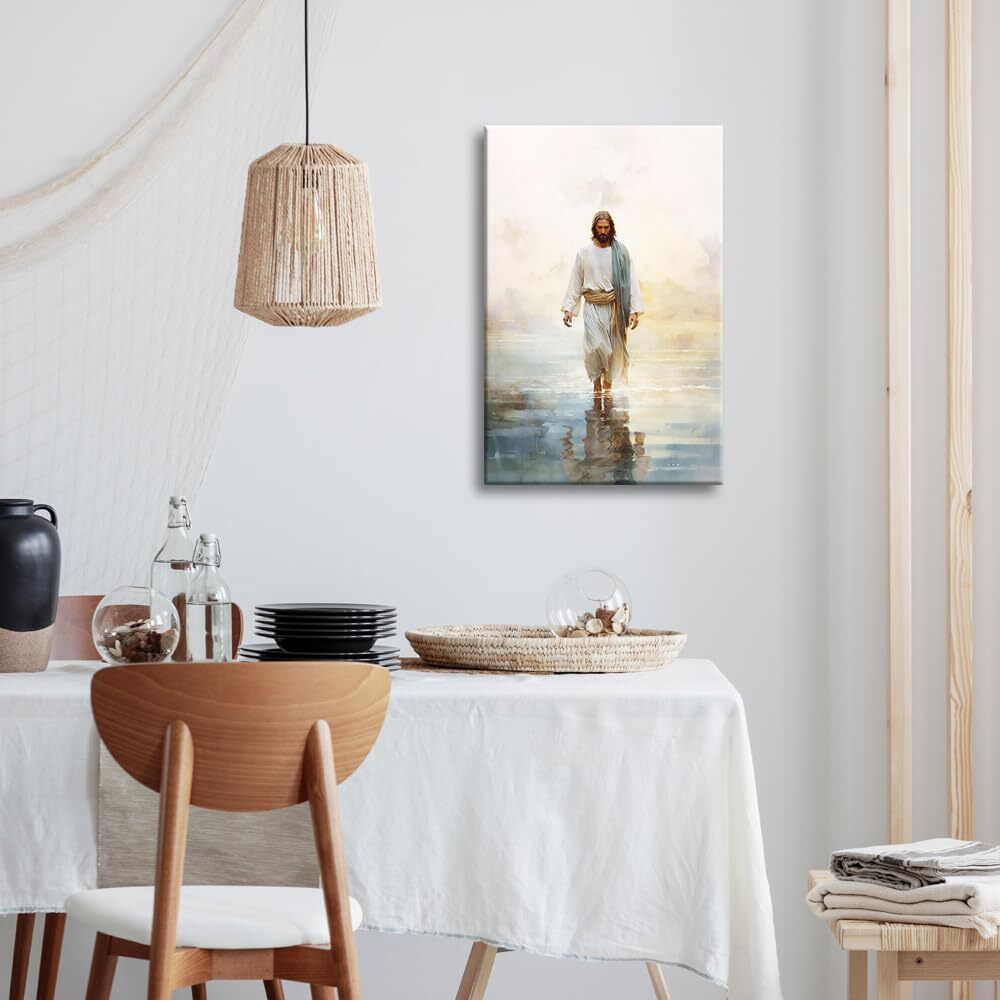 Jesus Walking on Water Bible Verse Wall Art Trendy Religious Poster Print