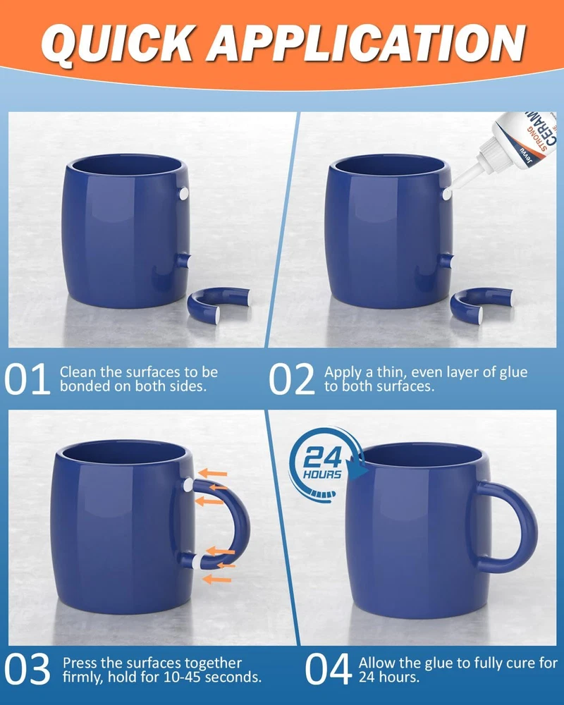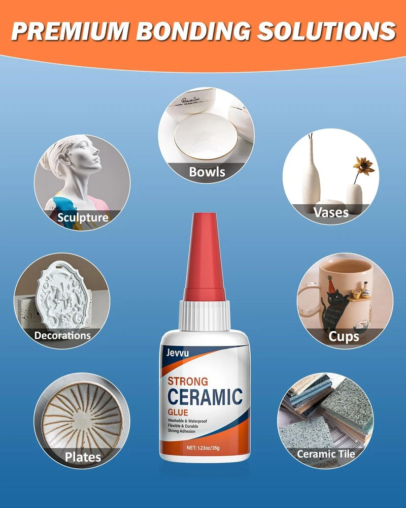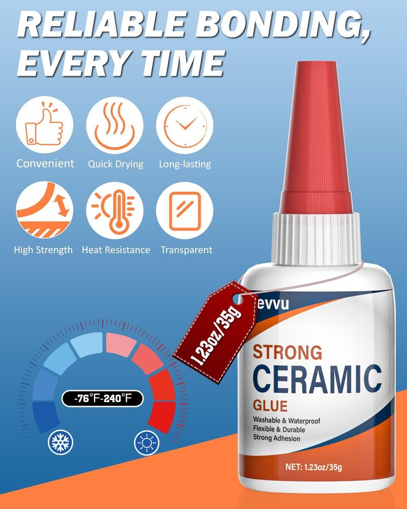 Ceramic Glue, 35g Super Glue for Porcelain and Pottery Repair, Strong Bond, Instant Super Glue for Tile, Dishes, Plates, Jewelry, DIY Crafts Reliable Ceramic Glue Repair Solution: Crafted for precision and strength, our ceramic glue repair formula is the best solution for restoring broken or cracked ceramic pieces. Whether you're working with delicate porcelain, shattered tiles, or cherished pottery, this super glue for ceramic repair creates a seamless bond that makes your items look brand new. Precision Tips for Intricate Fixes: Each bottle of ceramic glue includes ultra-fine droppers for controlled, mess-free application. Easily reach into cracks, corners, or tight spots—perfect for jewelry, small porcelain repairs, and fine pottery details. With this super glue for ceramic repair, precision meets convenience. Fast-Setting and Strong Bond: No more long wait times—our porcelain glue sets in just seconds and forms a durable hold within minutes. This ceramic glue for pottery is designed for quick and reliable repairs, making it ideal for everything from DIY crafts to everyday kitchenware. Multi-Purpose Compatibility: ceramic glue repair bonds a wide variety of surfaces—including dishes, tiles, pottery, porcelain figurines, jewelry, and DIY crafts. Whether you're fixing everyday ceramics or delicate collectibles, this is the ceramic glue for pottery you can count on. Simple and Safe to Use: Just clean the surfaces, apply the porcelain glue, press, and hold—it’s that easy. Ensuring user-friendly repairs at home or in the studio. Whether you're a hobbyist or a home fixer, this ceramic glue makes restoration effortless. Ceramic Glue, 35g Super Glue for Porcelain and Pottery Repair, Strong Bond, Instant Super Glue for Tile, Dishes, Plates, Jewelry, DIY Crafts Shipping We offer FREE shipping on all orders! We ship within Three business days of payment, usually sooner. We use a selection of shipping services such as UPS, FedEx, USPS etc. We only ship to the lower 48 states, no APO/FPO addresses or PO Boxes allowed. Local pickups and combined shipping options are not provided at this time. Return You can return a product for up to 30 days from the date you purchased it. Any product you return must be in the same condition you received it and in the original packaging. Please keep the receipt. Payment We accept payment by any of the following methods: PayPal Please pay as soon as possible after winning an auction, as that will allow us to post your item to you sooner! Feedback Customer satisfaction is very important to us. If you have any problem with your order, please contact us and we will do our best to make you satisfied. Contact Us If you have any queries, please contact us via ebay. We usually respond within 24 hours on weekdays. Please visit our eBay store to check out other items for sale! Thank you for shopping at our store.