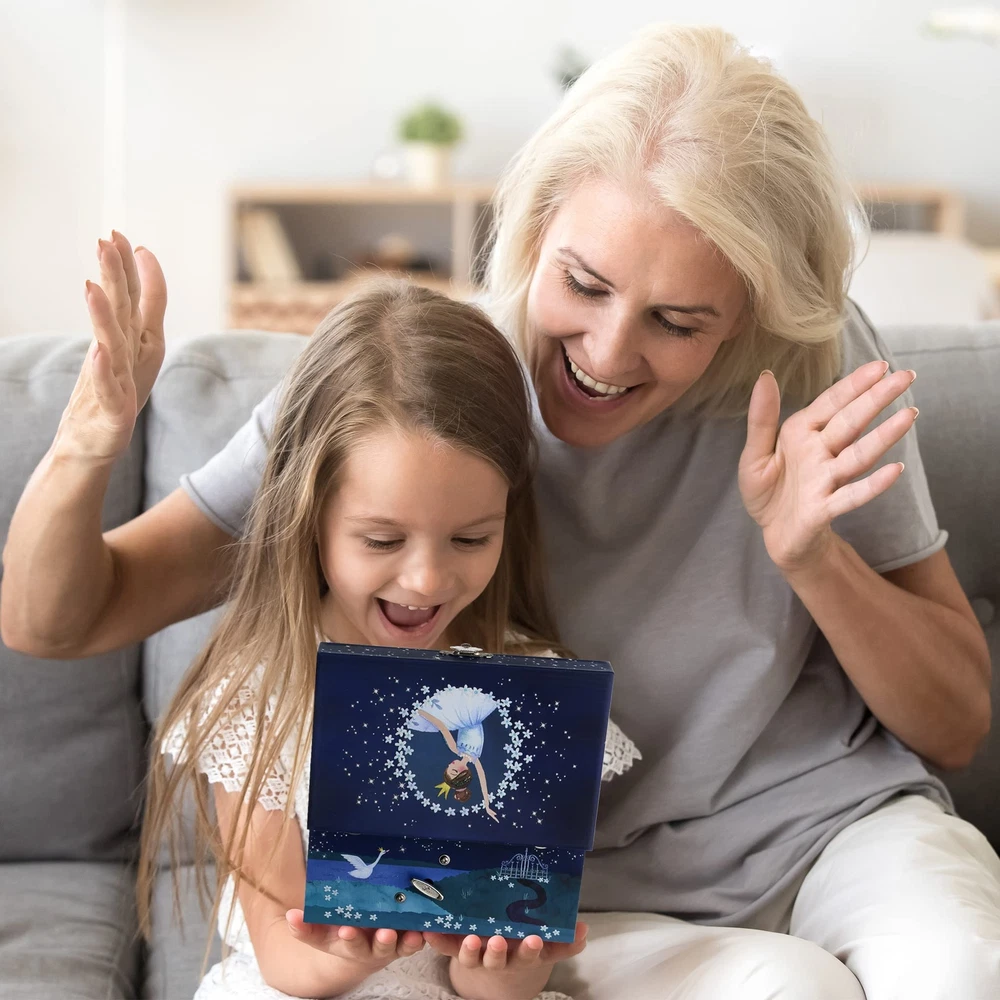 ⭐ Store Precious Treasures - Our ballerina music box makes it easy to organize little girls jewelry. A bonus bottom drawer with plenty of storage space for girls necklaces, bracelets, earrings, and other keepsakes. Not only will it help keep messy rooms organized, it also has a smooth, dark blue lining, which can help prevent your child’s trinkets from getting scratched. ⭐ Create Memorable Moments - Imagine her reaction when she opens her ballerina jewelry box to see a magical ballerina doll spin to the Swan Lake tune for the first time. Packaged in a Gift Box, our jewelry box is the ideal birthday gift for girls. Sure to put a smile on your child’s face, it’ll be a nostalgic memory kids will remember well into adulthood. ⭐ Spark the Imagination - All of our gifts and toys are thoughtfully created with children in mind. Our unique, timeless watercolor designs will inspire creativity and fill children with happiness. Jewelkeeper Music Boxes make for great dancer gifts and are sure to compliment any ballerina decor and sit beautifully among the growing collection of ballerina toys and girl stuff in their room! ⭐ Quality Parents Can Trust - Crafted with durable pine fiberboard material and a stylish silver-tone latch, our kids jewelry box is heavy and durable – so your gift is guaranteed to last! Rigorously tested for safety, each girls jewelry box meets CPSIA, ASTM and EN71 guidelines, ensuring your little ones are safe and in good hands. ⭐ Risk Free Shopping - Available in over 500 retail stores across the United States, shoppers just can’t get enough of Jewelkeeper musical jewelry boxes! Backed by our top-notch customer service and best all around value. Music box measures: 7.15 x 5.25 x 3.9 inches (L x W x H) when closed.