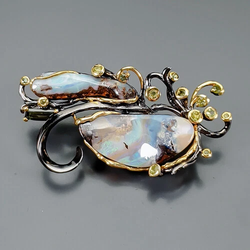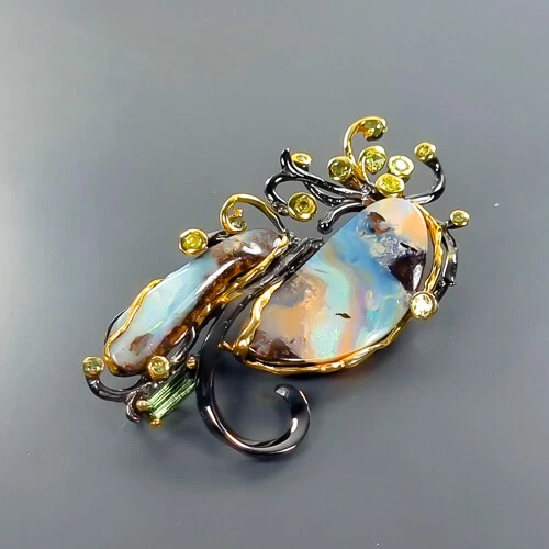 Fineart Jewellery Announcement Please note when you payment.(ONLY RING) Click for Resize. If you need to buy chain.(FOR Pendant) (SILVER) (BLACK) (GOLD) Jewellery 36ct+ Not Enhanced Boulder Opal Brooch 925 Sterling Silver /NB23505 Here is a video of the product Description NB23505 Product Type Brooch Gemstone Type Boulder Opal Gemstone Color Multi-Color Other Gemstones Tourmaline, Peridot Gemstone Size Treatment Not Enhanced Gemstone Origin Australia Material Sterling Silver Plating Black Rhodium & Gold Total Weight 14.8 g (GEM(S)+SETTING) Size (US) Resizing service is available (ONLY FOR RING) for $8-10 Click for Resize. If you need to buy chain.(FOR Pendant) (SILVER) (BLACK) (GOLD) Ring size About Us APB Jewelry has been one of the most trusted and honest jewelry stores on eBay over a decade. We have been in the jewelry business for over 20 years and have intense experiences in a variety of ethically-sourced genuine gemstones and handcrafted in 925 sterling silver. All of our jewelry is designed by creative jewelry designers, crafted by artisans, and made by skillful silversmiths. Every piece of gemstone is thoroughly selected by gemologists. We make our jewelry in-house to ensure that our customer will receive the finest quality material. Please click for choose and payment Click Here. Genuine gemstone and 925 sterling silver Buying jewelry online can sometimes be risky and tricky, it is quite important to know if it is genuine or synthetic gemstones (created by the laboratory), and how to identify the real or fake sterling silver. The common way to identify sterling silver is to search for a 925 stamp or mark, normally called 'hallmark'. Also, the real 925 sterling silver will not attract to magnet and change color when testing with nitric acid. We are using only real 925 sterling silver for all of our silver jewelry. However, the gemstone is quite harder to spot from the photo. If you are not a professional and planning to buy the real expensive gemstone, we would recommend buying the one which provide a certification from the reputable gemstone laboratories. We also provide the certification if needed, however, there will be an additional cost for testing charged by the labs. Laboratory services If you require the report of gemstone, we provide the following certificates: EMIL GEM Laboratory (Japan) Report with photo $25.00 GIA Identification Report with photo (Price depends on each item) GIT Identification Report with photo (Price depends on each item) We are here to help! Please do not hesitate to contact us, if you have any further questions regarding the items, our customer service agents will try their best to resolve any issues with your order as soon as possible Safe and secure payment We only accept payment via Paypal (the easy and safest way to pay online). *Important: If you need to combine shipping, please hold a payment until you finish bidding or shopping, you can make a payment after you finish all auction. Don't pay one by one, otherwise, your orders may be calculated a shipping fee individually and sent separately. Please make a payment within 7 days to avoid an automatic eBay unpaid case opened. Pack and ship everyday We ship worldwide direct to your door. Your order will immediately process once the payment has been received, so please hold the payment until you finish shopping if you need a combined shipping. We offer a standard trackable airmail cost $8.99 for a single item and $1 on each additional item.For example, if you combine 2 orders, there will be $9.99 for a delivery fee. As we are far away from you, general shipping from Thailand to overseas typically takes 15-25 business days. At extremely busy periods such as Christmas, New Year, long public holidays or natural disaster issues, some parcels may be subject to delays. We kindly ask our customers to be patient. If you are in rush to get your order, we would recommend FedEx delivery. They are faster and safer. The order estimates to arrive within 2-10 business days (depending on the destination). The cost will be calculated by the courier starting from $30 with no extra charge from us. Please note: if you are bidding or buying multiple items, the upgrade will be available within 10 days from the 1st item you purchase. As soon as your order ships, you can track it through your order section. Please contact us via eBay Message if you have not received the item(s) within 25 business days, we will be happy to assist you. Important: Please be aware that the customer will be responsible for the customs charges/duties. We cannot be held responsible for any additional charges the destination country imposes on the customer. How to return an item? We accept the return if you are not completely satisfied with your purchase. Please return the item(s) to us in the original condition (no signs of wear on jewelry) within 30 days of receiving. However, this does not apply to any piercing jewelry such as earrings due to hygienic reasons unless faulty. Please note that the customer will be responsible for the shipping charge. The refund will be issued after the item(s) return to us in the original condition. Safe and secure payment We only accept payment via Paypal (the easy and safest way to pay online). *Important: If you need to combine shipping, please hold a payment until you finish bidding or shopping, you can make a payment after you finish all auction. Don't pay one by one, otherwise, your orders may be calculated a shipping fee individually and sent separately. Please make a payment within 7 days to avoid an automatic eBay unpaid case opened. Customer service We are here to help! Please do not hesitate to contact us, if you have any further questions regarding the items, our customer service agents will try their best to resolve any issues with your order as soon as possible. Happy Feedback Your feedback is very valuable to us! We appreciate your feedback and will use it to evaluate changes and make improvements