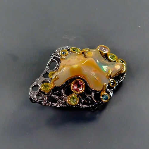 Fineart Jewellery Announcement Please note when you payment.(ONLY RING) Click for Resize. If you need to buy chain.(FOR Pendant) (SILVER) (BLACK) (GOLD) Jewellery Gift Not Enhanced Opal Brooch 925 Sterling Silver /NB23507 Here is a video of the product Description NB23507 Product Type Brooch Gemstone Type Opal Gemstone Color Multi-Color Other Gemstones Tourmaline, Peridot, Sapphire Gemstone Size Treatment Not Enhanced Gemstone Origin Ethiopia Material Sterling Silver Plating Black Rhodium & Gold Total Weight 11.7 g (GEM(S)+SETTING) Size (US) Resizing service is available (ONLY FOR RING) for $8-10 Click for Resize. If you need to buy chain.(FOR Pendant) (SILVER) (BLACK) (GOLD) Ring size About Us APB Jewelry has been one of the most trusted and honest jewelry stores on eBay over a decade. We have been in the jewelry business for over 20 years and have intense experiences in a variety of ethically-sourced genuine gemstones and handcrafted in 925 sterling silver. All of our jewelry is designed by creative jewelry designers, crafted by artisans, and made by skillful silversmiths. Every piece of gemstone is thoroughly selected by gemologists. We make our jewelry in-house to ensure that our customer will receive the finest quality material. Please click for choose and payment Click Here. Genuine gemstone and 925 sterling silver Buying jewelry online can sometimes be risky and tricky, it is quite important to know if it is genuine or synthetic gemstones (created by the laboratory), and how to identify the real or fake sterling silver. The common way to identify sterling silver is to search for a 925 stamp or mark, normally called 'hallmark'. Also, the real 925 sterling silver will not attract to magnet and change color when testing with nitric acid. We are using only real 925 sterling silver for all of our silver jewelry. However, the gemstone is quite harder to spot from the photo. If you are not a professional and planning to buy the real expensive gemstone, we would recommend buying the one which provide a certification from the reputable gemstone laboratories. We also provide the certification if needed, however, there will be an additional cost for testing charged by the labs. Laboratory services If you require the report of gemstone, we provide the following certificates: EMIL GEM Laboratory (Japan) Report with photo $25.00 GIA Identification Report with photo (Price depends on each item) GIT Identification Report with photo (Price depends on each item) We are here to help! Please do not hesitate to contact us, if you have any further questions regarding the items, our customer service agents will try their best to resolve any issues with your order as soon as possible Safe and secure payment We only accept payment via Paypal (the easy and safest way to pay online). *Important: If you need to combine shipping, please hold a payment until you finish bidding or shopping, you can make a payment after you finish all auction. Don't pay one by one, otherwise, your orders may be calculated a shipping fee individually and sent separately. Please make a payment within 7 days to avoid an automatic eBay unpaid case opened. Pack and ship everyday We ship worldwide direct to your door. Your order will immediately process once the payment has been received, so please hold the payment until you finish shopping if you need a combined shipping. We offer a standard trackable airmail cost $8.99 for a single item and $1 on each additional item.For example, if you combine 2 orders, there will be $9.99 for a delivery fee. As we are far away from you, general shipping from Thailand to overseas typically takes 15-25 business days. At extremely busy periods such as Christmas, New Year, long public holidays or natural disaster issues, some parcels may be subject to delays. We kindly ask our customers to be patient. If you are in rush to get your order, we would recommend FedEx delivery. They are faster and safer. The order estimates to arrive within 2-10 business days (depending on the destination). The cost will be calculated by the courier starting from $30 with no extra charge from us. Please note: if you are bidding or buying multiple items, the upgrade will be available within 10 days from the 1st item you purchase. As soon as your order ships, you can track it through your order section. Please contact us via eBay Message if you have not received the item(s) within 25 business days, we will be happy to assist you. Important: Please be aware that the customer will be responsible for the customs charges/duties. We cannot be held responsible for any additional charges the destination country imposes on the customer. How to return an item? We accept the return if you are not completely satisfied with your purchase. Please return the item(s) to us in the original condition (no signs of wear on jewelry) within 30 days of receiving. However, this does not apply to any piercing jewelry such as earrings due to hygienic reasons unless faulty. Please note that the customer will be responsible for the shipping charge. The refund will be issued after the item(s) return to us in the original condition. Safe and secure payment We only accept payment via Paypal (the easy and safest way to pay online). *Important: If you need to combine shipping, please hold a payment until you finish bidding or shopping, you can make a payment after you finish all auction. Don't pay one by one, otherwise, your orders may be calculated a shipping fee individually and sent separately. Please make a payment within 7 days to avoid an automatic eBay unpaid case opened. Customer service We are here to help! Please do not hesitate to contact us, if you have any further questions regarding the items, our customer service agents will try their best to resolve any issues with your order as soon as possible. Happy Feedback Your feedback is very valuable to us! We appreciate your feedback and will use it to evaluate changes and make improvements in our 