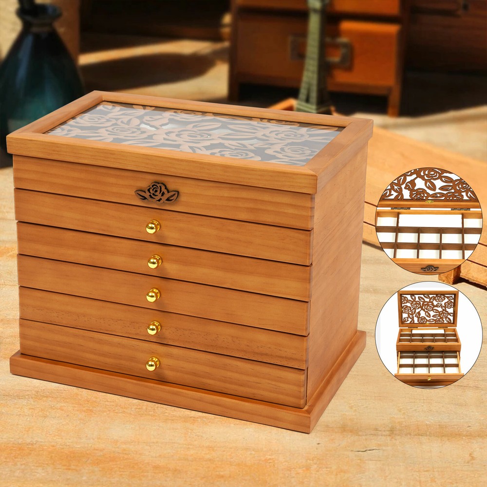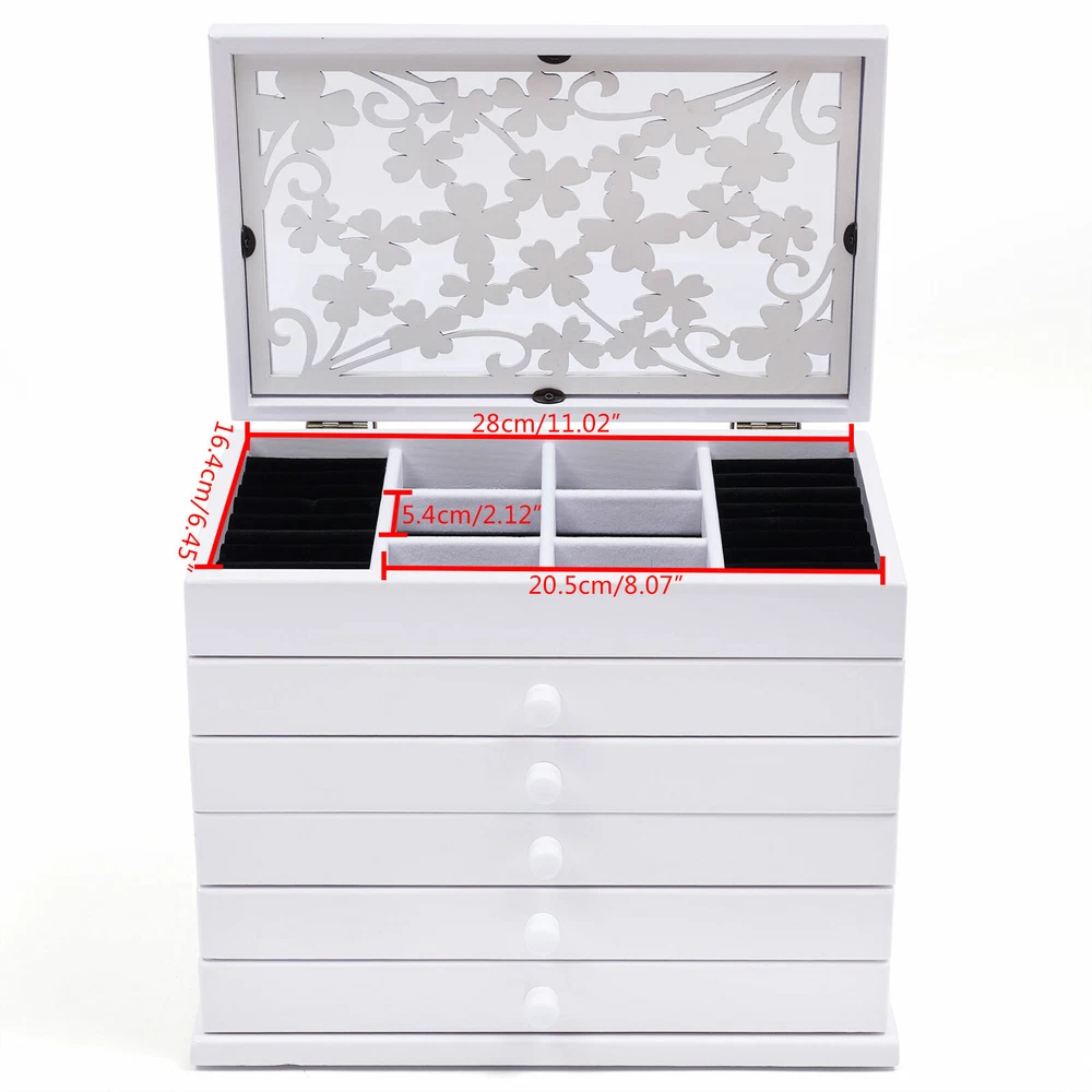 Jewelry Box Organizer for Women Girls Large Jewelry Storage Case with Drawers🔥 Specifications: Colors: white/ Walnut Color Layer: 6 layers Types: without mirror Material: Wooden Sizes: 31x20x24.5 cm/12.2*7.9*9.6 inch Features: - This is a retro wooden jewellery box. Fashionable and practical. - Made of high quality wood. - Can hold many kinds of jewelry. - No need to assemble. - A great gift for your mother/girlfriend/sister. Package included: 1 x Wooden Jewellery Box Payment Delivery details Terms of sales About us Contact us Payment We accept ebay payment 。 Fees such as import duties, taxes are not included in the item price or shipping costs. These charges are the buyer's responsibility. Delivery details Shipping: 2-9 working days to: USA Terms of sales We maintain high standards of excellence and strive for hundred percent customer satisfaction. Feedback is very important to us. We hope that you contact us immediately before you give neutral or negative feedback, so that we can address your concerns. It is impossible to address issues if we do not know about them! About us Your satis faction is our ultimate goal. We work hard to earn your trust and future business. Our certified technicians have tested each item before shipping. The unit comes with 1 year limited warranty on all manufacturing defects. a) If you receive a defective item, you may return it or ask for a discount. Please contact us within 14 days after you receive the package. b) What you returned must be intact and in its original packaging as re? u. Customer is responsible for shipping costs of the returned item. c) We will cover the cost of shipping back t with the shipping rate indicated in the registration page. We will send you a new unit or refund the full payment you paid. Thank you. Contact us Business Hour Business Hour: Monday To Friday: 8:30 AM to 5:00 PM (Beijing China time) Due to time zones, our reply to your questions may not be immediately. But within above working time, we will reply your email within 24 hours. If it's non-workdays, please kindly be patient and wait till Monday. Please contact us with ebay message. Please feel free to contact us if you have any questions. Monday To Friday: 8:30 AM to 5:00 PM (Beijing China time) Due to time zones, our reply to your questions may not be immediately. But within above working time, we will reply your email within 24 hours. If it's non-workdays, please kindly be patient and wait till Monday. Please contact us with ebay message. Please feel free to contact us if you have any questions.