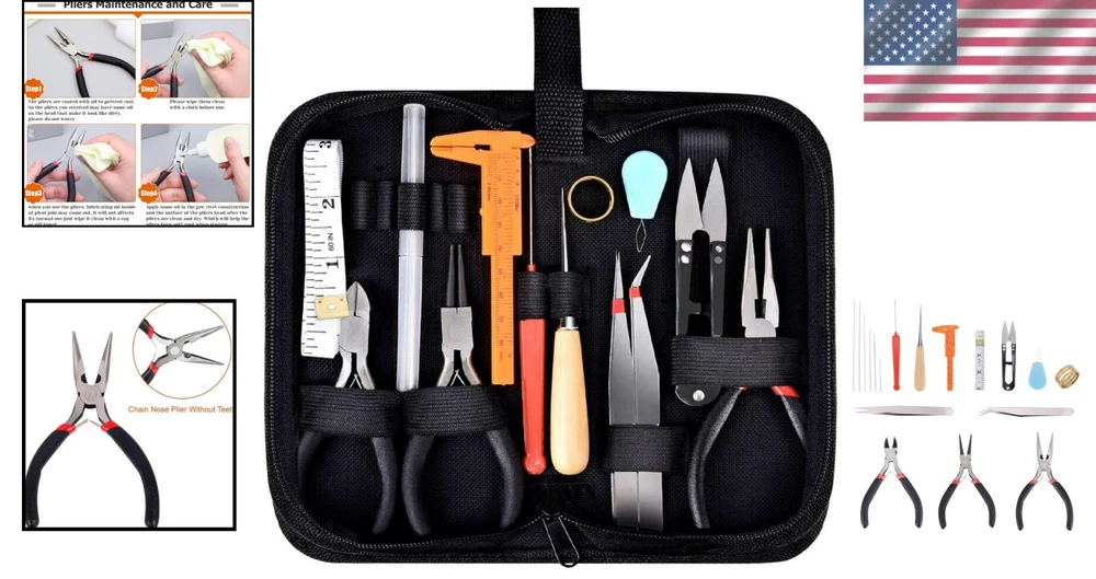 Jewelry Crafting Tool Set 19Pcs with Black Zip Storage Pouch for Easy Repairs ‹ › ‹ › ‹ › ‹ › ‹ › ‹ › ‹ › ‹ › ‹ › Jewelry Crafting Tool Set - 19Pcs Complete with a sophisticated black zip storage pouch, this Jewelry Crafting Tool Set is designed to elevate your jewelry making and repair experience. Whether you are a professional or an enthusiastic beginner, this versatile set unites all essential tools required for your creative projects. Features: 19 essential pieces, including three premium jewelry pliers: round nose, wire cutting, and chain nose. Double leaf spring design and non-slip handles for maximum safety and versatility. Comes with a stylish, easy-to-carry black zip pouch for optimal organization and portability. Includes additional tools: 6 needles, 2 tweezers (one straight and one bent), caliper, awl, jump ring opener, bead embroidery needle, thread scissors, tape measure, needle threader. Please note: Pliers may arrive with protective oil coating - simply wipe with a cloth before use for best results. Benefits: Simplifies jewelry making and repair, making it accessible for everyone. Encourages creativity, allowing you to design and customize your unique jewelry pieces. Perfect for DIY enthusiasts, from beginners to experienced artisans, ensuring hours of enjoyable crafting. Tools are organized in one place, making it convenient to find what you need without any hassle. Protective features ensure longevity and effective performance of your tools. Why Choose Our Jewelry Crafting Tool Set? Transform your passion for jewelry making into a fulfilling hobby or profession with our meticulously curated Jewelry Crafting Tool Set. With 19 essential pieces packaged in an elegant zip pouch, you’ll have everything you need at your fingertips. No more cluttered workspaces or misplaced tools—just creativity at its finest! Start your journey of learning, creating, and enjoying the art of jewelry making today. Order your Jewelry Crafting Tool Set and unlock endless possibilities! Shipping Free & Fast Shipping - We offer free shipping to most of the USA with a normal delivery time of 3-7 days. However, due to the current situation, additional delivery time (up to 3 weeks) may be required for some items. Alternative Carriers - We may use alternative carriers (e.g. USPS, FedEx, UPS, etc.) to ensure your package arrives safely and on time. Due to the use of multiple carriers, we are unable to provide a tracking number automatically. Handling Time - Orders are processed and shipped within 1-2 business days of receiving cleared payment. Shipping Restrictions - Shipping to Alaska, Hawaii, Puerto Rico, Guam, and other US territories may incur shipping charges or delivery restrictions. Please contact us before ordering, or your order can be refunded/cancelled. State Restrictions - There may be restrictions based on your state of purchase. For example, certain items may not be shipped to California due to state regulations. Contact for Tracking Updates - If you require tracking updates or have any concerns about the delivery of your order, please feel free to contact us, and we will be happy to assist you. Return 30-Day Hassle-Free Returns - We want you to be completely satisfied with your purchase. If you are not, you can return the item within 30 days of receiving it for a full refund or exchange. Easy Return Process - To start a return, simply contact us and we will provide you with a prepaid return shipping label and detailed instructions. Restocking Fee - There are no restocking fees for returns. However, the buyer is responsible for return shipping costs if the return is not due to a seller's error. Refund Processing Time - Refunds will be processed within 5 business days of receiving the returned item in its original condition. Payment We accept all major credit cards, PayPal, and Apple Pay for your convenience. Your payment information is secure and encrypted to ensure a safe and seamless transaction. Please complete your payment within 3 days of purchase to avoid any delays in shipping. Feedback Your feedback is extremely important to us. We strive to provide the best products and customer service possible. If you are satisfied with your purchase, please take a moment to leave us a positive review. If you have any concerns or issues with your order, please contact us before leaving negative feedback. We are committed to resolving any problems and ensuring your satisfaction. Contact Us If you have any questions or concerns, please feel free to reach out to our customer support team. You can contact us through the eBay messaging system. We are available Monday to Friday, 9:00 am to 5:00 pm EST, and we will do our best to respond to your inquiry within 24 hours. Buy it now and enjoy a pleasant shopping experience! UPC: Not Set Unit Quantity: 0.79 Material: Metal Suitable For: Jewelry Making,Jewelry Repair,DIY Projects Set Includes: Plier,Round Nose Plier,Wire Cutting Plier,Chain Nose Plier,Needles,Tweezers,Caliper,Awl,Jump Ring Opener,Bead Embroidery Needle,Thread Scissors,Tape Measure,Needle Threader,Zipper Storage Case Brand: Unbranded Type: Tool Set Color: Black Country/Region of Manufacture: Not Set Seller Warranty: No MPN: Not Set Unit Type: lb