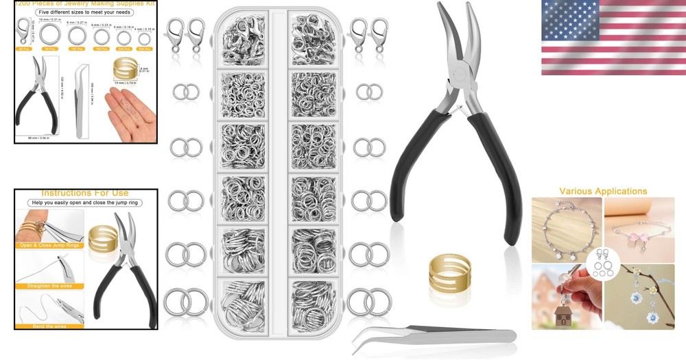 Jewelry Making Kit - 1200PCS Jump Rings & Tools in Silver for Creative Repairs ‹ › ‹ › ‹ › ‹ › ‹ › ‹ › ‹ › ‹ › ‹ › Jewelry Making Kit -1200PCS Jump Rings & Tools in Silver for Creative Repairs Features: Includes a total of 1200 pieces of silver jump rings and jewelry clasps. Comes with a jump ring opener tool, bent nose pliers, and tweezers for easy handling. Assorted sizes: 4 mm, 5 mm, 6 mm, 7 mm, and 8 mm for versatile jewelry repairs and crafts. Convenient packaging in a handy box with separate compartments for easy sorting. Made of lead-free metal that is safe and durable. Benefits: Great value and a comprehensive assortment for all your jewelry-making needs. Flexibility to repair or create various jewelry pieces using different sizes. User-friendly tools included for effortless repair work. Neat organization of jump rings prevents loss and mess. Superior quality ensures longevity and safety of your creations. Why choose our Jewelry Making Kit? Unlock your creativity with our Jewelry Making Kit, featuring 1200 high-quality jump rings and essential tools designed for both avid jewelry makers and beginners alike. Whether you're fixing a cherished piece or crafting something entirely new, this kit provides you with a variety of sizes and the right tools to ensure effortless repairs and flawless creations. With our lead-free metal jump rings known for their durability and strength, you can create with confidence. The smartly organized box not only keeps your materials tidy but also inspires order and meticulous creativity. Dive into the world of jewelry making and make every piece a unique expression of your style. Order your Jewelry Making Kit today and embrace the art of crafting with elegance! Shipping Free & Fast Shipping - We offer free shipping to most of the USA with a normal delivery time of 3-7 days. However, due to the current situation, additional delivery time (up to 3 weeks) may be required for some items. Alternative Carriers - We may use alternative carriers (e.g. USPS, FedEx, UPS, etc.) to ensure your package arrives safely and on time. Due to the use of multiple carriers, we are unable to provide a tracking number automatically. Handling Time - Orders are processed and shipped within 1-2 business days of receiving cleared payment. Shipping Restrictions - Shipping to Alaska, Hawaii, Puerto Rico, Guam, and other US territories may incur shipping charges or delivery restrictions. Please contact us before ordering, or your order can be refunded/cancelled. State Restrictions - There may be restrictions based on your state of purchase. For example, certain items may not be shipped to California due to state regulations. Contact for Tracking Updates - If you require tracking updates or have any concerns about the delivery of your order, please feel free to contact us, and we will be happy to assist you. Return 30-Day Hassle-Free Returns - We want you to be completely satisfied with your purchase. If you are not, you can return the item within 30 days of receiving it for a full refund or exchange. Easy Return Process - To start a return, simply contact us and we will provide you with a prepaid return shipping label and detailed instructions. Restocking Fee - There are no restocking fees for returns. However, the buyer is responsible for return shipping costs if the return is not due to a seller's error. Refund Processing Time - Refunds will be processed within 5 business days of receiving the returned item in its condition. Payment We accept all major credit cards, PayPal, and Apple Pay for your convenience. Your payment information is secure and encrypted to ensure a safe and seamless transaction. Please complete your payment within 3 days of purchase to avoid any delays in shipping. Feedback Your feedback is extremely important to us. We strive to provide the best products and customer service possible. If you are satisfied with your purchase, please take a moment to leave us a positive review. If you have any concerns or issues with your order, please contact us before leaving negative feedback. We are committed to resolving any problems and ensuring your satisfaction. Contact Us If you have any questions or concerns, please feel free to out to our customer support team. You can contact us through the eBay messaging system. We are available Monday to Friday, 9:00 am to 5:00 pm EST, and we will do our best to respond to your inquiry within 24 hours. Buy it now and enjoy a pleasant shopping experience! MPN: Jewelry_Making_Supplies Unit Quantity: 1200 Material: Metal Shape: Round Color: Silver Style: DIY Finish: Glossy Size: Multiple Sizes Stone: None
