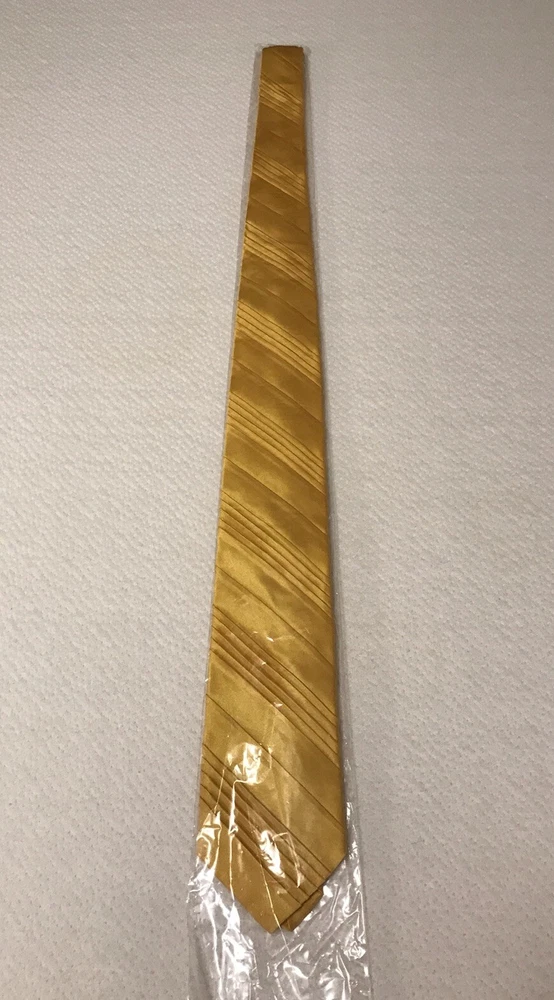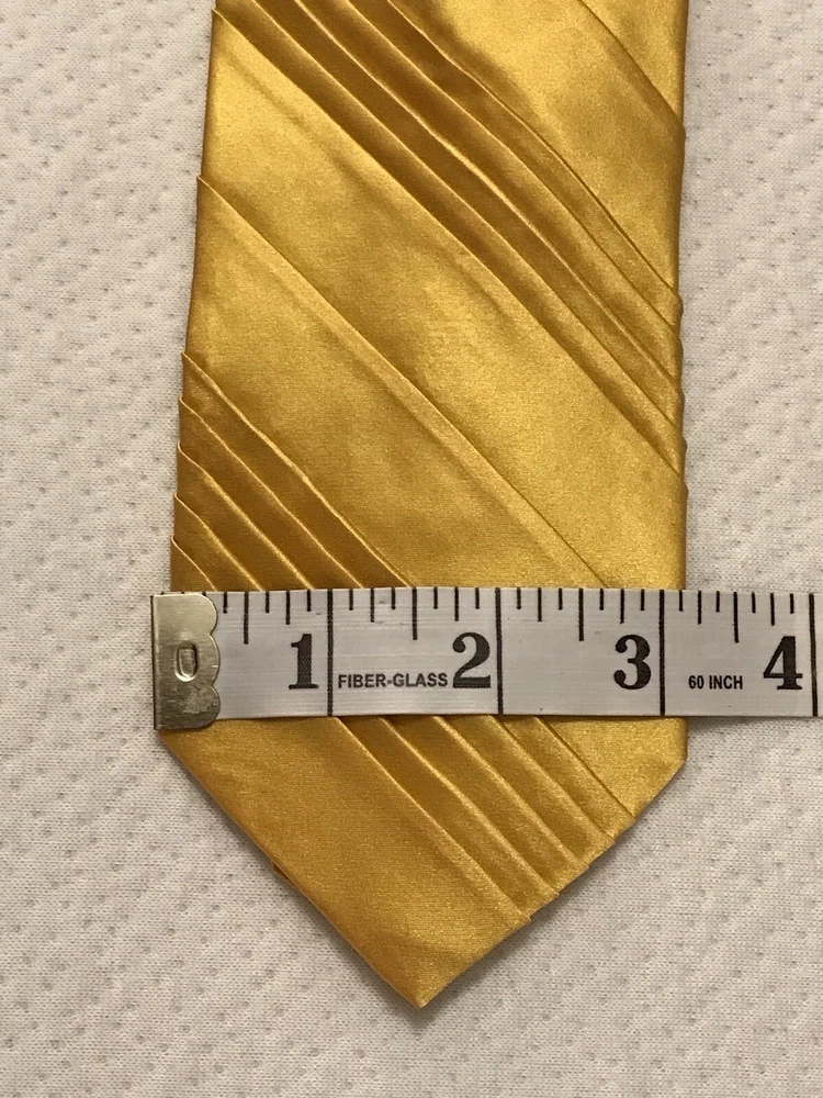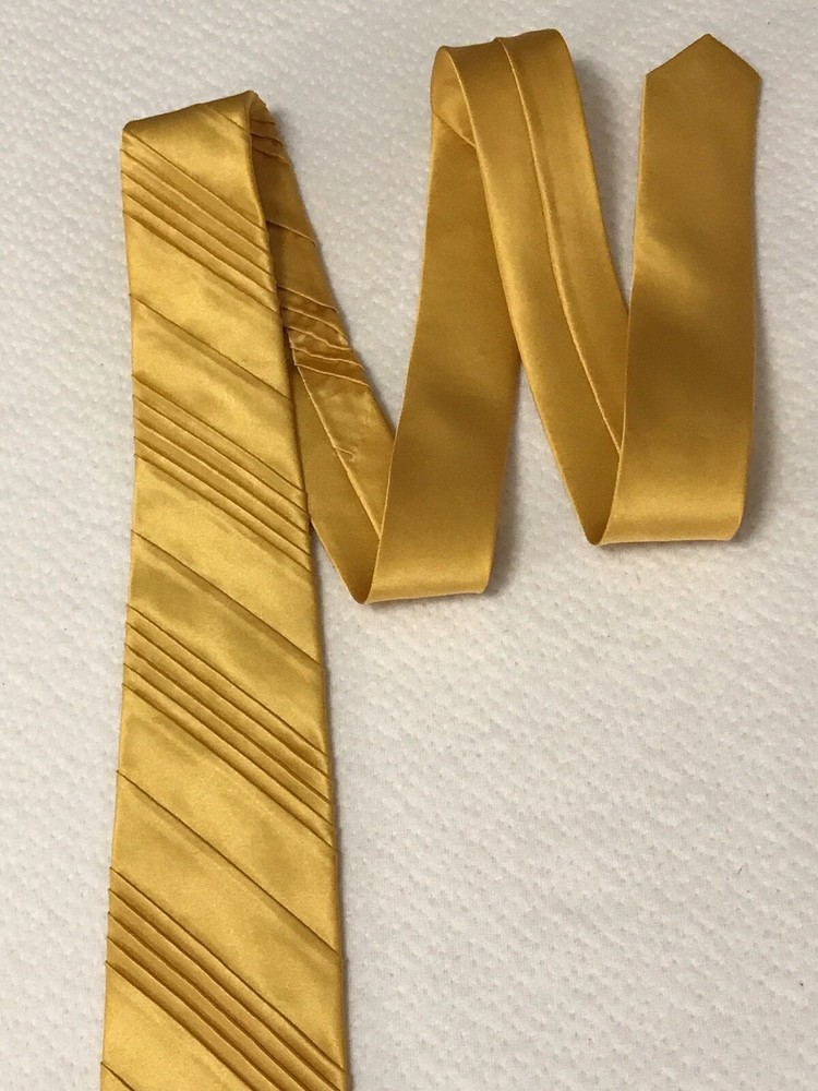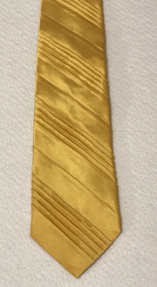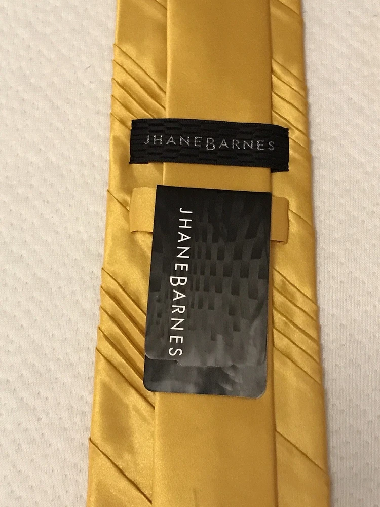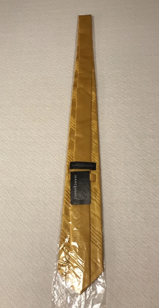 This Jhane Barnes Silk Satin Look Neck Tie in Gold is a stylish and elegant accessory for formal occasions. Made from luxurious silk with a pleated design, this designer tie adds a touch of sophistication to any outfit. The gold color and classic width make it suitable for a variety of events, from weddings to Easter celebrations. With adjustable sizing and a length of 56 inches, this tie is a perfect choice for those looking to elevate their formal look with a pop of color and a touch of preppy style. In a smoke free home.