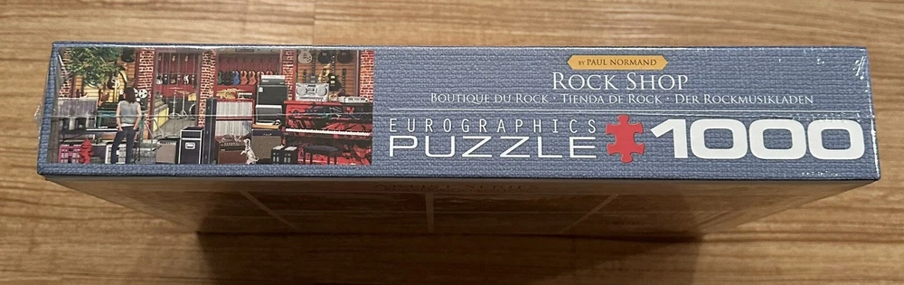 Experience the challenge and satisfaction of completing a 1000-piece puzzle with this Rock Shop Guitar puzzle game. Immerse yourself in the world of music and let your creativity flow as you piece together this colorful puzzle. The puzzle features a music shop theme, with a guitar vibe, making it perfect for any music lover. This contemporary jigsaw puzzle is a great addition to any toy or hobby collection. With a range of difficulty levels, it's suitable for both beginners and experienced puzzle solvers. Get ready to sharpen your skills and have fun all at once with this Jigsaw Puzzles 1000 Piece Puzzle. This puzzle is brand new still in the box and wrapping! It even still has the price tag on it! Great gift idea! Any questions please send me a message! INCLUDES BONUS 500 PC SURPRISE PUZZLE TOO!