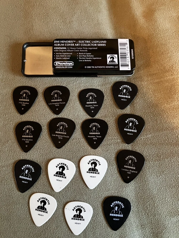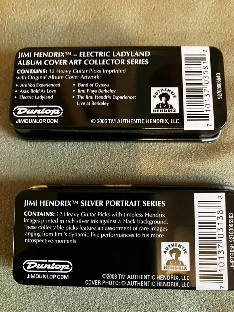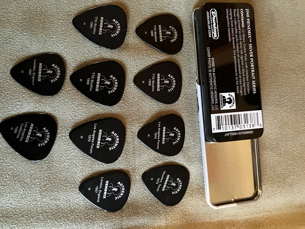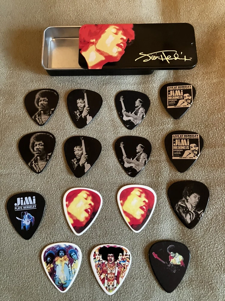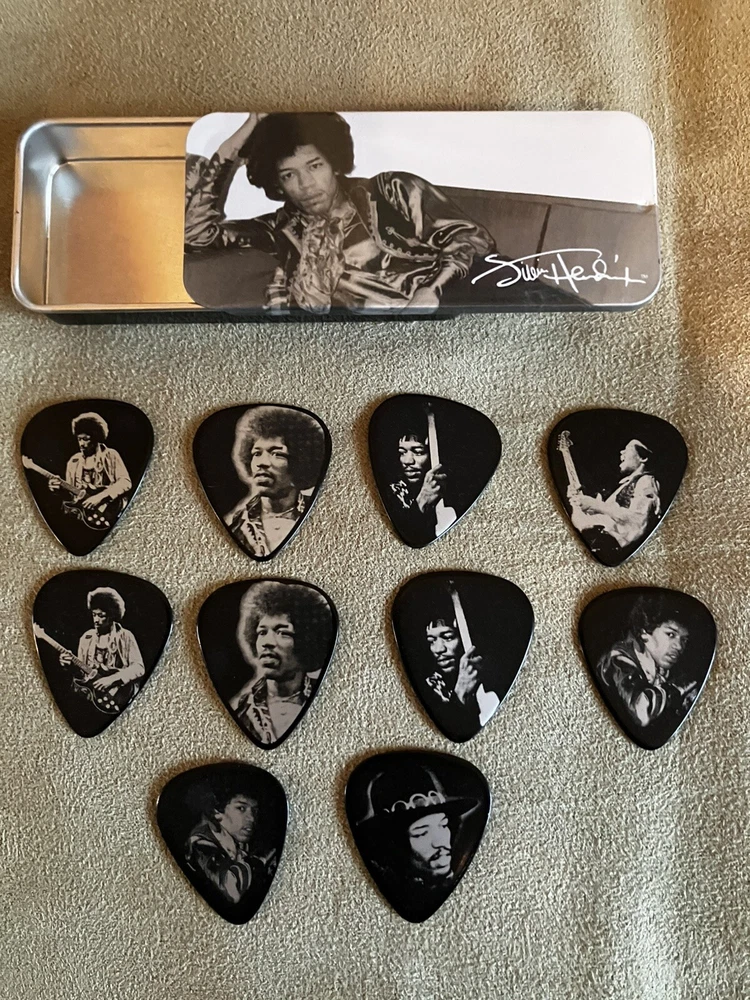 The Jimi Hendrix Imprinted Guitar Picks are a collectible item featuring the iconic guitarist's name and image. These guitar picks are designed for fans and musicians alike to pay homage to the legendary musician while playing their favorite songs. With Jimi Hendrix's name imprinted on each pick, they serve as a unique piece of memorabilia for collectors of music-related items or fans of the guitar virtuoso.