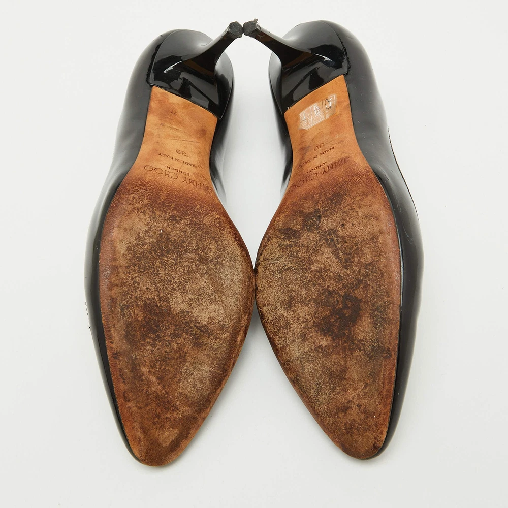 Our eBay Store About Us Contact Us Add to Favorite Sellers Jimmy Choo Black Patent Leather Pumps Size 39 Refined and versatile, these Jimmy Choo pumps feature a sleek black patent leather finish for a polished look. Their classic pointed-toe silhouette and comfortable heel height make them ideal for both office wear and evening outings. Product Details Brand Jimmy Choo Color Black Includes The Luxury Closet Packaging Outsole Length 26 cm Outsole Width 8 cm Size 39 Certified by The Luxury Closet This item has gone through a detailed authentication process overseen by our experts. We offer a lifetime guarantee of authenticity on all our items. How We Check The in-house team of experts at The Luxury Closet is highly trained to verify the authenticity and the condition of the luxury products. They ensure that only 100% authentic items are put on sale.The evaluation process is unique with its own mix of assessment criteria and differs according to the category. Each item is evaluated based on the following combination of hallmarks, hardware, stitching, symmetry, material, craftsmanship, stamping, codes, hologram stickers, and packaging. Our authenticators also check if the items have been modified or amended (e.g., aftermarket diamonds, replaced batteries, repaired bags, etc.) International Buyers Import duties, taxes and charges are not included in the item price. These charges are the buyers responsibility. Please check with your country’s customs office to determine what these additional cost will be prior to buying.