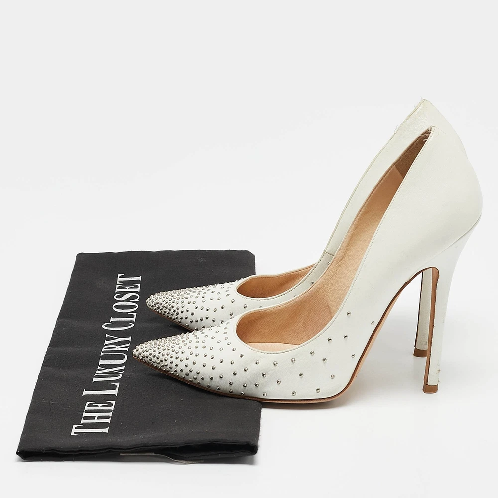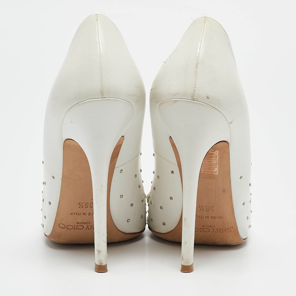 These white leather pumps are where timeless design meets modern allure. Artfully crafted in Italy, the pointed toe silhouette is adorned with delicate pearl embellishments, offering a touch of opulence.Certified by The Luxury Closet - This item has gone through a detailed authentication process overseen by our experts. We offer a lifetime guarantee of authenticity on all our items. Import duties, taxes and charges are not included in the item price. These charges are the buyers responsibility. Please check with your country’s customs office to determine what these additional cost will be prior to buying. Our eBay Store About Us Contact Us Add to Favorite Sellers Jimmy Choo White Leather Romy Pearl Embellished Pointed Toe Pumps 36.5 $185.9 These white leather pumps are where timeless design meets modern allure. Artfully crafted in Italy, the pointed toe silhouette is adorned with delicate pearl embellishments, offering a touch of opulence. Product Details Brand Color White Dimensions Material Leather Size 36.5 Outsole Width 8 cm Outsole Length 25 cm Heel Height 11 CM Includes The Luxury Closet Packaging Certified by The Luxury Closet This item has gone through a detailed authentication process overseen by our experts. We offer a lifetime guarantee of authenticity on all our items. How We Check The in-house team of experts at The Luxury Closet is highly trained to verify the authenticity and the condition of the luxury products. They ensure that only 100% authentic items are put on sale.The evaluation process is unique with its own mix of assessment criteria and differs according to the category. Each item is evaluated based on the following combination of hallmarks, hardware, stitching, symmetry, material, craftsmanship, stamping, codes, hologram stickers, and packaging. Our authenticators also check if the items have been modified or amended (e.g., aftermarket diamonds, replaced batteries, repaired bags, etc.) International Buyers Import duties, taxes and charges are not included in the item price. These charges are the buyers responsibility. Please check with your country’s customs office to determine what these additional cost will be prior to buying.