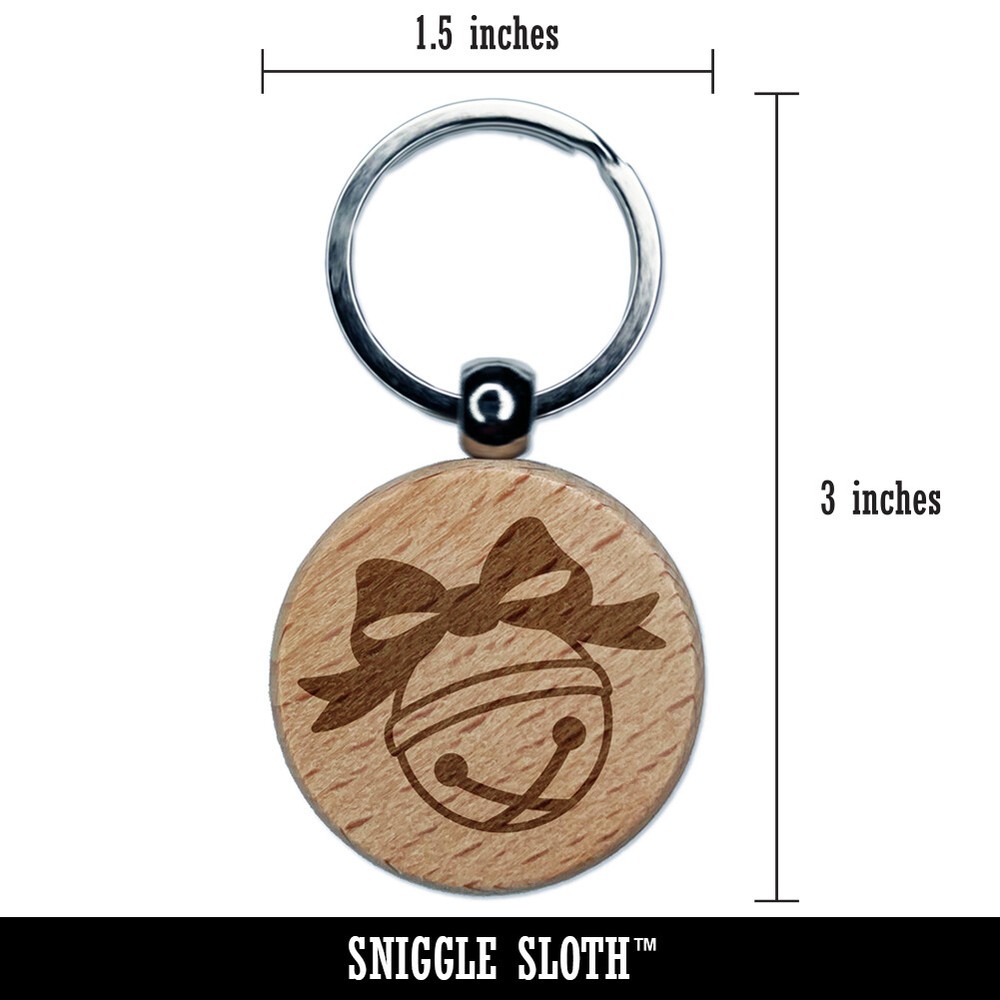 Jingle Bell Christmas Wooden Round Keychain Charm with Engraving