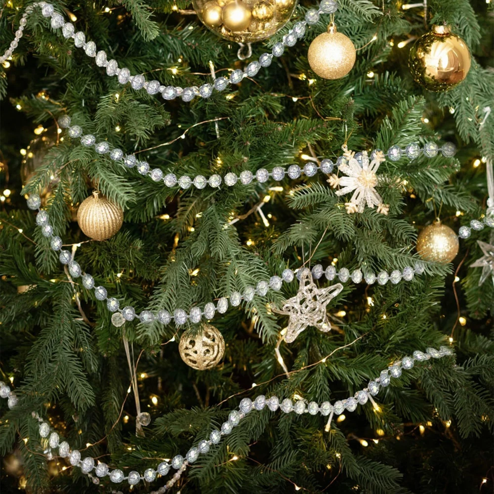 Jishi 99ft Crystal Bead Garland for Christmas Tree 99ft, Clear Iridescent Product Details Brand: Jishi Color: Clear Iridescent Material: Plastic Item Length: 1080 Inches Is Artificial Garland: Yes CRYSTAL BEAD GARLAND FOR CHRISTMAS TREE DECORATIONS 99 FT VALUE PACK: Our crystal garland strand is clear iridescent color faux flat round diamond shaped acrylic plastic crystal beads on a string craft roll. Each crystal beads is 10mm in diameter, and connected with string. Single 99ft long, easy to cut to any length to meet any decorative needs. CLEAR IRIDESCENT ACRYLIC PLASTIC PREMIUM QUALITY: Lightweight, won't put too much pressure on lamps, chandeliers, centerpieces or christmas trees. - Sturdy and Durable, strong enough to be a beaded curtain on closet doors, doorways, windows. - Clear Iridescent, reflects light and sunshine very well, looks and feels as ab colored crystal gems - You can’t refuse the price to meet your decorative needs. IRIDESCENT CHRISTMAS PARTY DECORATIONS INDOOR: This sparkly bling bling holographic rainbow colorful shine crystal beads string party garland radiate dazzling and fascinating colorful iridescent glares. Perfect for last disco bachelorette party decorations, birthday party decorations, dance party, theme party, holiday party for all seasons, New Year, graduation, baby shower, bridal shower, wedding celebration decorations. CRYSTAL BEAD GARLAND CHRISTMAS DECORATIONS INDOOR HOME DECOR: Elegant clear iridescent crystal garland for christmas tree decorating, glam glitter holiday home decor. Hang this wonder gorgeous hanging crystal beads ornament garland or stick it on wall, door, doorway, window, ceiling, bedroom, baby rooms, attach to banquet table cloths, or as a wedding anniversary photo booth background backdrop, chandelier crystals replacement prism, christmas ornaments. DIY CRAFT SUPPLIES: Our clear iridescent crystal beads string is very nice, great for crafting projects, manzanita tree centerpiece, handmade crafts items, beaded curtains for doorways, beaded curtains for closet, beaded door curtains, suncatcher for window, hanging crystals for decoration for centerpieces, cakes, bouquets, wreaths, crystal rhinestones trim, luxury beauty jewels chain, make your own christmas ornaments, to decorate clothes, shoes, bags, photo frames, pretty DIY accessories, etc. Jishi 99ft Crystal Bead Garland for Christmas Tree Decorations, Iridescent Acrylic Beaded Garland Strand Roll, Hanging Christmas Decorations Indoor Home Decor, String Diamond Beads for Crafts and Curtains, Crystal Bead Garland Strand, Roll of Clear Iridescent Crystal Beads on a String, Wedding Party Decorations for Centerpiece Doorway Beaded Curtain, Clear Acrylic Diamond Gem Chain, Christmas Tree Ornaments