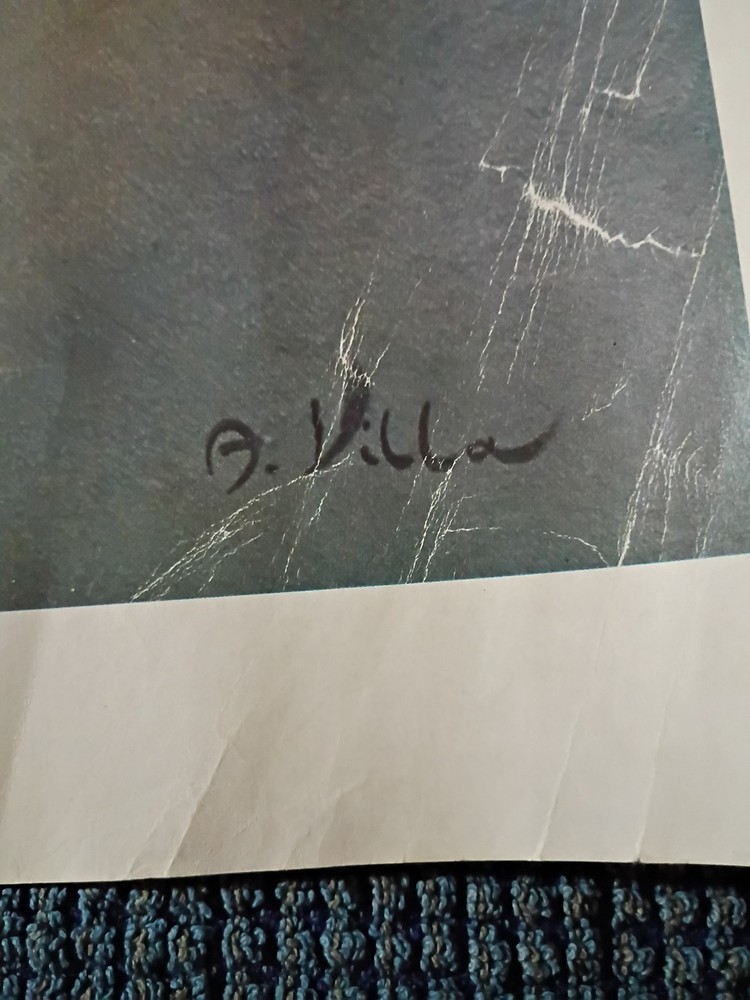 Has spot on right side.The product is an Italian artist's job advertisement featuring a glamorous lady. This collectible ad likely showcases the artist's unique style and talent, making it a desirable item for art enthusiasts and collectors alike. The advertisement may contain intricate details and bold imagery that reflect the artist's personality and aesthetic, making it a valuable addition to any collection of advertising memorabilia.