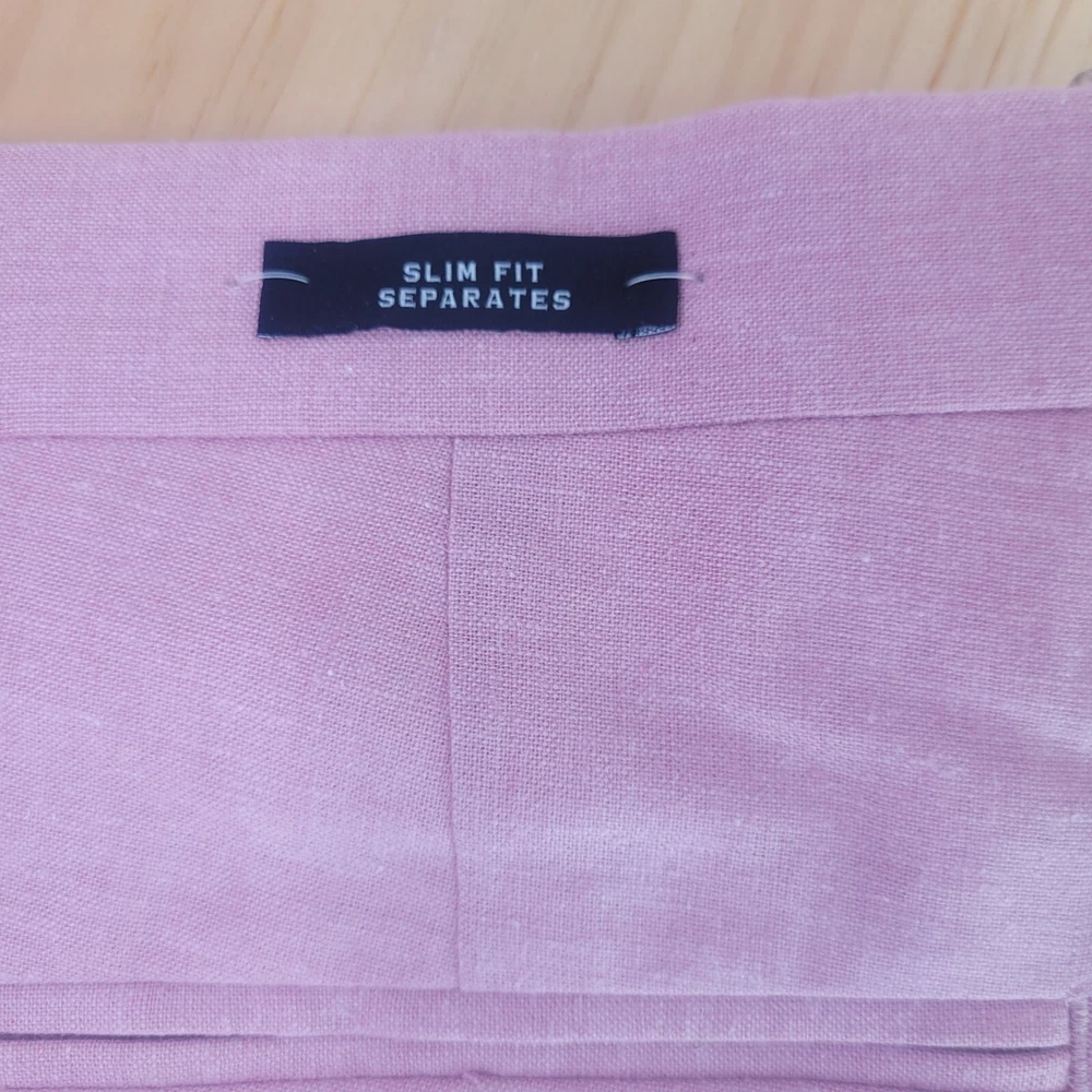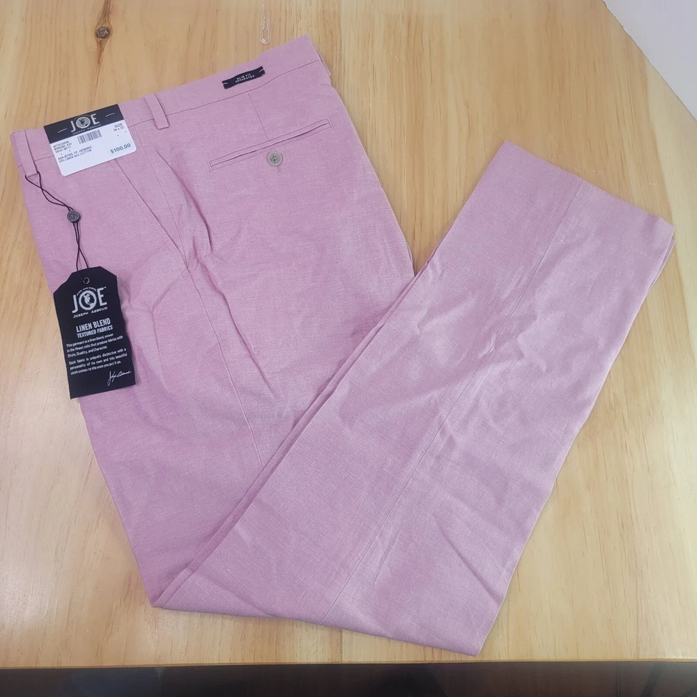 These raspberry pink slim fit suit pants by Joseph Abboud are designed for a beach-themed wedding occasion. Made of linen and cotton, they feature a flat front and a slimming fit for a stylish look. With a waist size of 38 inches and inseam of 32 inches, these dress pants are in size 38x32, catering to big and tall men. The closure options include a zip, button, and hook & eye, making these pants a fashionable choice for the event.