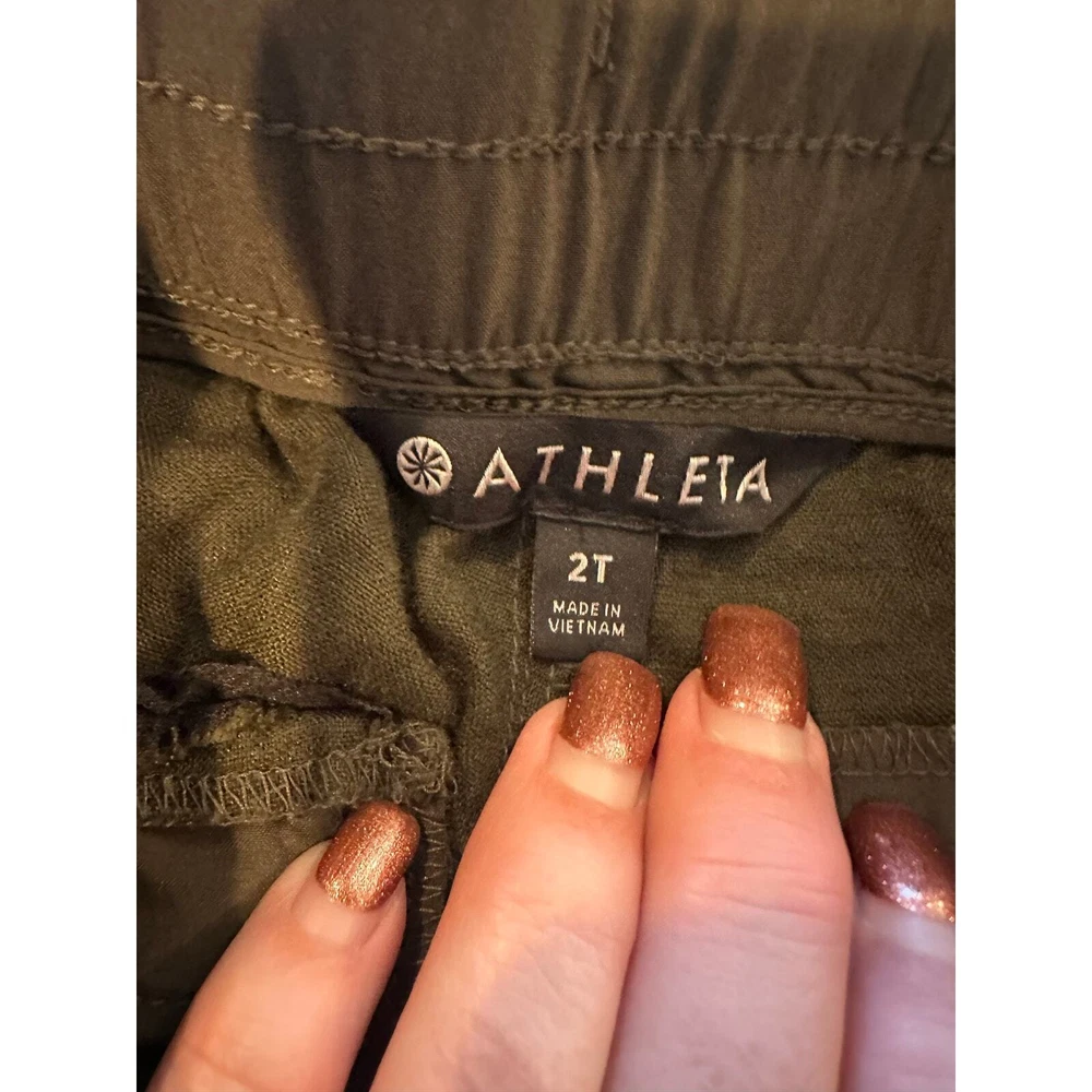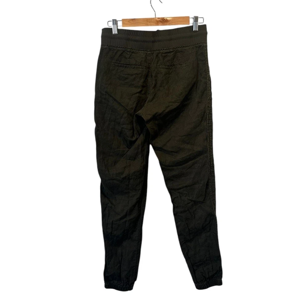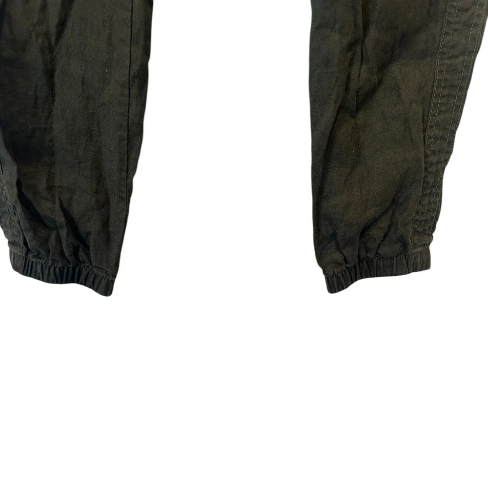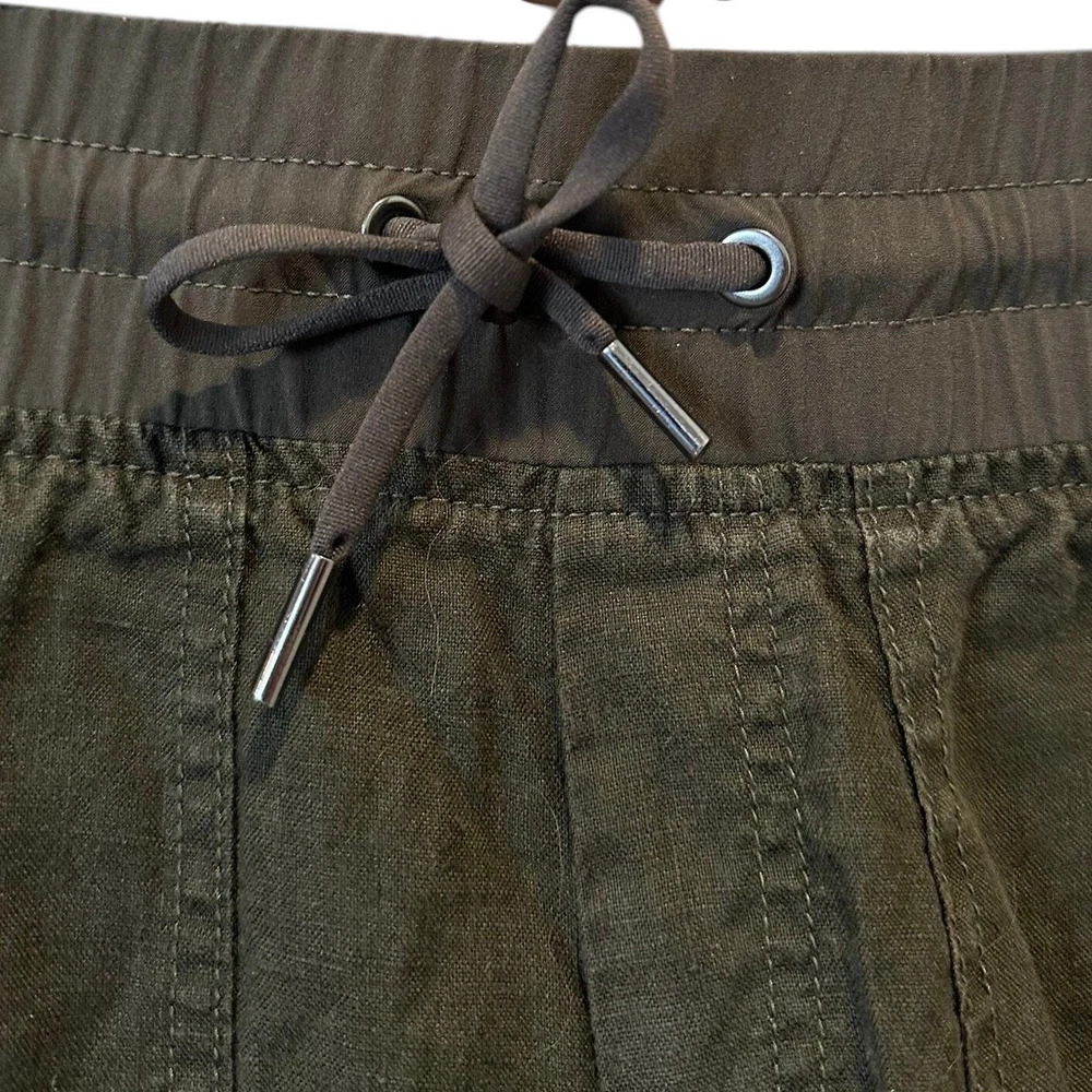 Athleta Cabo 100% Linen Coastal Grandma Minimalist Classic Joggers Olive Green Size 2 Tall Product Details FOR: Warm-weather travels, resort vacations, and to and from the beach FEEL: Our take on lightweight linen fabric is subtly textured and 100% washable FAVE: Front zip pockets secure your essentials Cinch at ankle for a custom fit Fabric sheerness is due to the lightweight nature of linen 100% Linen BREATHABLE: Airflow moves easily through the garment Machine wash inside out Imported. 100% Linen Approximate Measurements Waist 15” across Inseam 30” Rise 10.25”