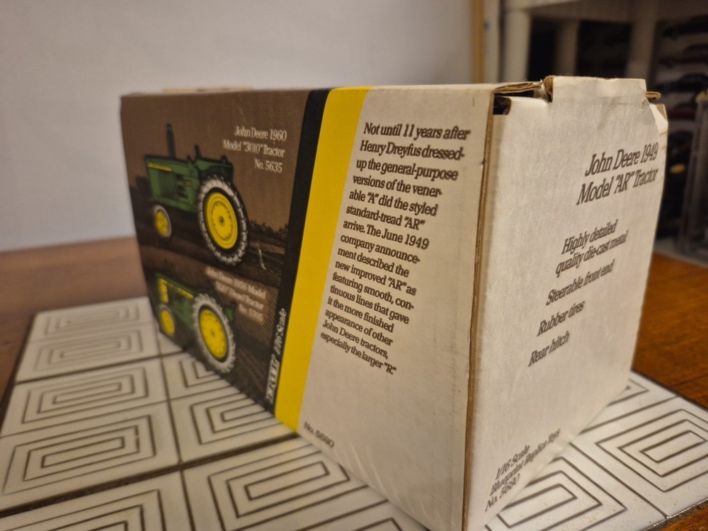 The John Deere 1949 Model AR Tractor 1/16 Ertl diecast is a highly detailed toy vehicle perfect for collectors and young fans alike. Made of cast iron with a green color scheme, this 1:16 scale model features a steering mechanism for interactive play. Manufactured in 1993 by Ertl as part of their Farm Country series, this tractor appeals to boys and girls aged 3 and up who enjoy farm vehicles and the John Deere theme. Made in the United States, this diecast toy is a great addition to any collection or playtime for children of all ages.