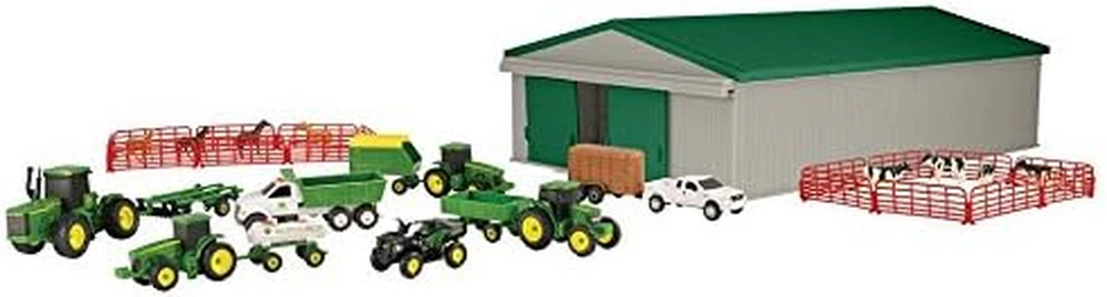 Store New Arrivals Add to Favorite View Feedback Contact John Deere Die-Cast Farm Toys Playset - 1:64 Scale - Includes Farm Animals, Machine Shed, Toy Tractors, Toy Trucks, and Farm Tools - 70 Count - 8 Years and Up Description Item model number 46276A Style Die-cast Farm Product Dimensions 12 x 12 x 0.55 inches Country of Origin China Item Weight 1.5 pounds Manufacturer recommended age 8 - 15 years Is Discontinued By Manufacturer No Release date March 11, 2016 Manufacturer TOMY Value Farm Toys: This 1:64 scale farm playset comes with a total of 70 pieces that kids and collectors will love, including tractors, trucks, farm tools, farm animal toys, and more Durable Construction: Toys in this collection are made from high quality die-cast metal or durable plastic to keep playtime going day after day Easy to Use: Store and hide your farm animal toys within the John Deere toy shed, with a removable rooftop and doors that open for easy access Customizable Toy: The large size of this farm set with a wide variety of pieces allows your kids to customize their play and create a new adventure every day Kids Toys: This farm toy set is an Officially Licensed John Deere product for John Deere toy enthusiasts ages 5 years and up Get ready for a new farming adventure every day with this whopping 70-piece farm toys value set from John Deere that includes everything you need to kickstart your own miniature farm! Each set includes a variety of tractor toys, toy trucks, farm implements, and cute farm animals. This expansive farm set allows you to customize play time and create a new farming adventure every time you open the box. Whether herding livestock or plowing the fields, hours of fun are ready to be had time and time again. Each vehicle is made from high-quality die-cast metal and plastic for long-lasting value for years to come. The Machine Shed also includes a removable roof and opening doors for fun playtime inside of the shed or an easy way to store your favorite pieces for another day. These toy vehicles are approximately three inches long each and 1: 64 in scale. The machine shed, fencing, and animals are sized to match the vehicles. These fun vehicles feature free-rolling wheels and a die-cast chassis. This kids playset is an Officially Licensed John Deere Product and is perfect for collectors and kids ages 5 years and up. ABOUT US We offer the best prices around on high quality products. Our E-store includes media such as books, movies, music and games while offering electronics, toys, sporting apparel, clothing, tools, general home, garden items and more. SHIPPING We are always working hard to ensure your package arrives as soon as possible. Please understand that some factors like weather, high postal traffic, and the performance of shipping companies are outside of our control. We offer free shipping to the lower 48 states and ship within 2 business days of payment, usually sooner. We do not accept P.O. Boxes. Please provide a physical address. RETURNS We offer a 30-Day Return Policy on items which you are not completely satisfied with. You have the option for a full-refund or an exchange of the item. No returns are available on items shipped outside of the USA. PAYMENT We accept PayPal. CONTACT US This page content is yet to come Please ad us to your favorite seller and visit again later Thank You CUSTOMER SATISFACTION We try our very best to make sure every customer is completely satisfied. If there's a problem, message us! We're happy to help.