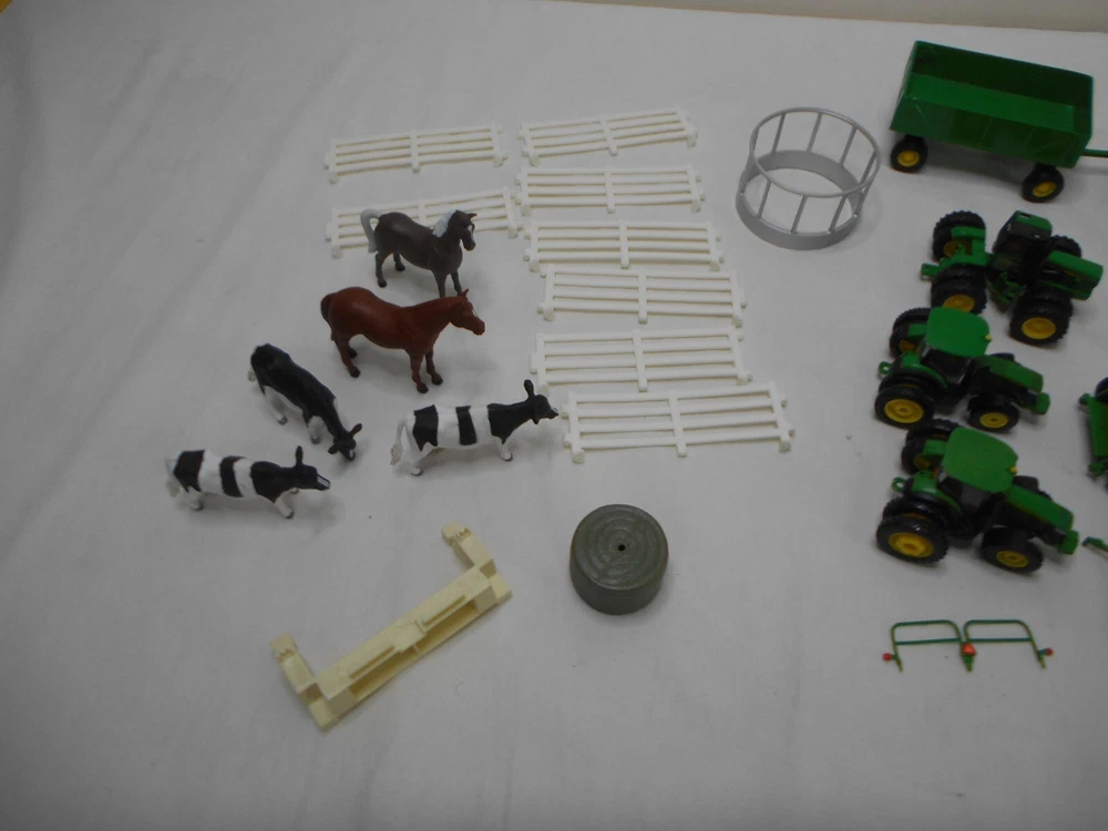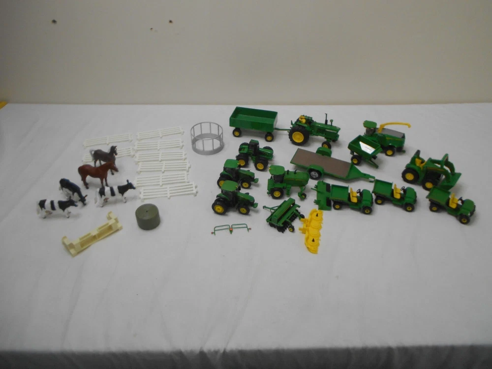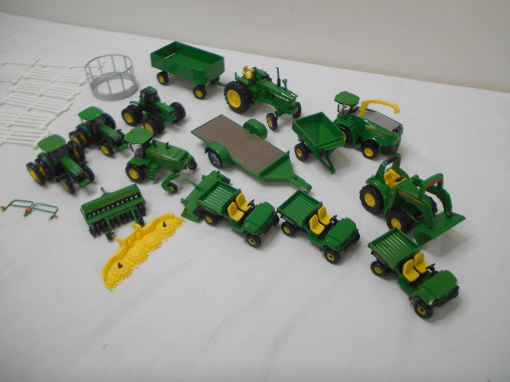 This John Deere Ertl Tractor bundle comes with a variety of farming equipment, including a loader and combine. The tractors are made of durable diecast and plastic materials, ensuring they can withstand tough farming conditions. The green color and John Deere branding make this a great addition to any collection. The tractors are part of the ERTL Farm Country series, and are perfect for kids and collectors alike.