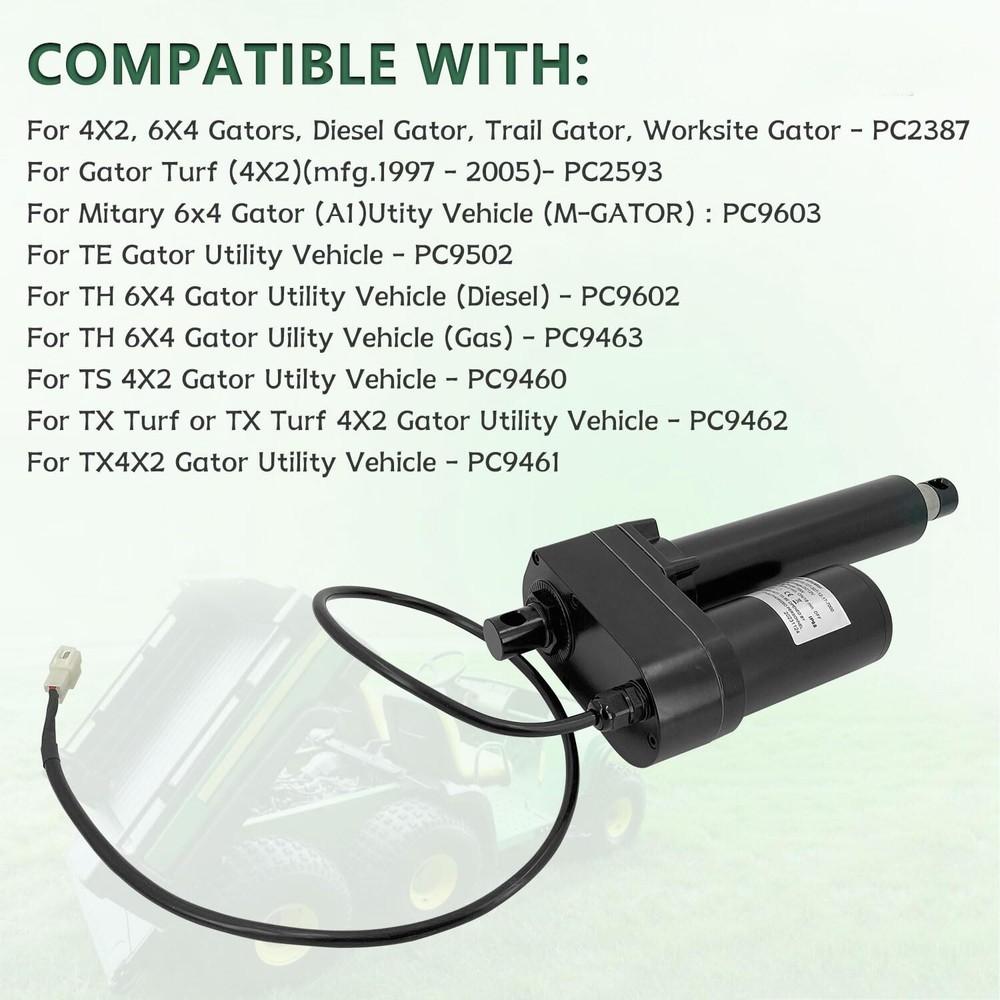 Auto-supermark Your Best Online Business Partner DESCRIPTION PAYMENT SHIPPING RETURN POLICY CONTACT US Shop Category Store Home Other Hot Item Throttle/Choke Cable For Troy-Bilt Craftsman Mustang XP ZT S RZT 57" 94605145 USD 19.53 155031102, 155031110, 305213902 For Franklin box, well pump relay, rva2alkl USD 18.28 Air Filter Kit For Bobcat T740 T750 T770 T870 V519 PA31010 PA31011 7010030 USD 41.15 For Kohler 23HP 20HP 22HP Engine KH-32-083-03-S Air Filter Kit USD 25.14 DA97-14504C / DA97-14504A Ice Container for Samsung Ice Tray Assembly USD 78.39 New List Item 3X Hydraulic Oil Filter 144-6691 32909000 For JOHN DEERE 95981 4118911 32909000 USD 42.23 694393 Fuel Shut-Off Solenoid For B S Lawn Garden Equipment Engine 692734 USD 14.09 2X Hydraulic Oil Filter 144-6691 32909000 For JOHN DEERE 95981 4118911 32909000 USD 34.46 Brand New Lube / Oil Filter Replacement DBL7405, Spin-On Full Flow Blue USD 24.83 Air Filter P608533 3252003 For JCB 32925682 VOLVO VOE17491798 BOBCAT 7474062 USD 32.66 Help & Info Payment Policy Shipping Policy Return Policy FAQ About Us Lift Actuator AM131228 AM133408 For John Deere Utility Vehicle Gator 6X4 4X2 Excellent Performance: Our actuator is cl osely inspected and validated to meet all kinds of strictest quality standards to ensure a long lifetime, and tested before leaving factory to make sure reliability and superior performance. Make your machine work like brand new! Exact Fit: Easy installation, precision-engineered to industry standards for a guaranteed perfect fit. Warranty: 30 Days Free Return. Technical Notes: Stroke: 127mm Speed: 17mm/s Thrust: 7000W Rated Voltage: 12V Mounting Distance: 327mm (center-to-center hole distance when the actuator is retracted). Tolerance: ±2mm (if actual distance deviates within 2mm, compatibility remains unaffected). Troubleshooting: No actuator response → Check for circuit issues causing power failure. Loose connector → Verify plug connection. Quality Assurance: All actuators are tested before shipment. Package Included: 1 X Actuator Note: Communication is the best way to solve the problem. If you have any problems after purchasing, please contact us in time, before opening return or case. Item Specifics Brand : Unbranded Manufacturer Part Number : AM133408, AM131228 stroke : 127mm Type : Actuator Unit Quantity : 1 Replace : Replace for BM23765 BM20701 BM21468 BM22870 Part Number : AM133408, AM131228 Compatible Equipment Make : For John Deere Compatible Equipment Type : for Utility Vehicle GATOR 6X4 4X2 TX TH TS Payment Shipping Returns Contact Us Dear customer,if you have any questions,you can contact us,we will provide the best service for you. The item will be shipped within 24 hours on payment received except the holidays.(except weekends & official holidays). You can log on to eBay to check your logistics tracking number.Please confirm address before purchase, and cannot change address once purchased. If you need to receive the item quickly, please contact us, you can pay the postage to choose other logistics. Please contact us first when return, exchange and refund is required. Any direct return of purchased items will not be processed. Item must be returned in new condition, as received with all accompanied accessories and literature, including the factory carton. Shipping, handling is not refundable unless item is returned because of defect. If the product is defective or damage upon arrival,please contact us immediately,we will provide the solve the problem. Returns accepted within 30 days of delivery date and item must be in original new condition. Our goal is complete customer satisfaction. We will be very honored to provide you with quality service. If there is an issue with shipping or the item you purchased please contact us via ebay message or call us before opening a case or leaving feedback.We will try our best to resolve any kind of issue. All rights reserved.
