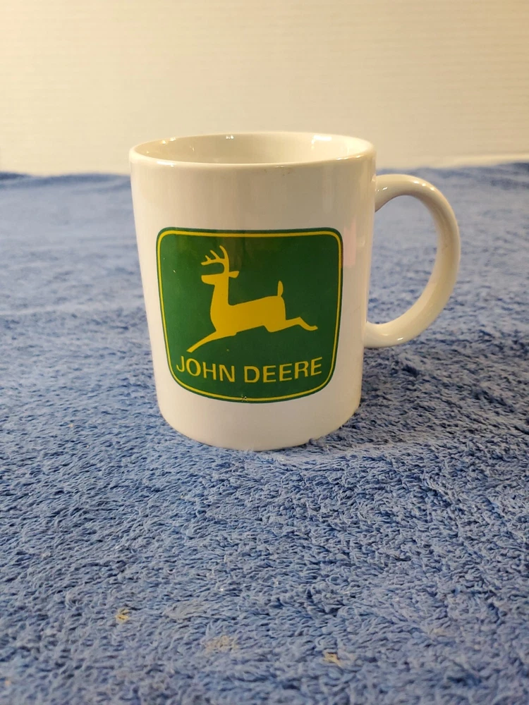 John Deere Licensed Product White Coffee Tea Mug Cup by Gibson Farmers Farm. There is a small chip on the bottom of the mug. Please see pictures. WILL SHIP IN STURDY BOX. WE WILL COMBINE SHIPPING ON MULTIPLE ITEMS IF POSSIBLE. PLEASE CHECK OUT OUR OTHER ITEMS. THANKS FOR LOOKING.