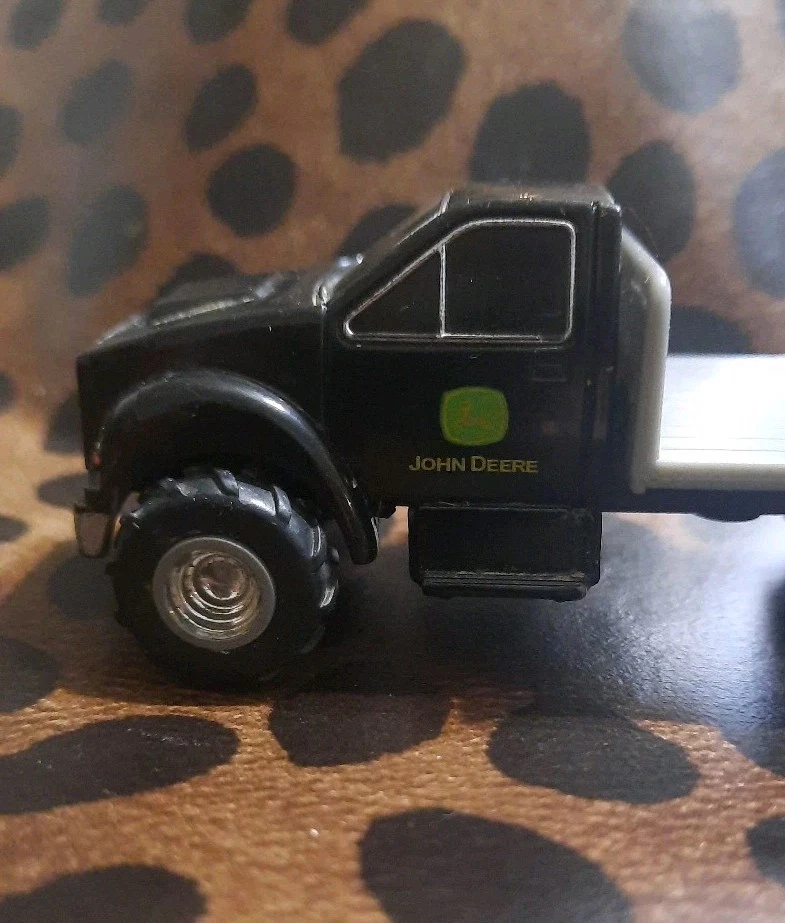 This John Deere truck hauler diecast toy is a must-have for any collector or fan of the brand. It features a flatbed design and is in the 1:64 scale. The vehicle make is John Deere and the theme is also John Deere. The hauler is made of a combination of diecast and plastic materials and is in good used condition. The color of the hauler is black and it belongs to the ERTL Farm Country series. The toy is perfect for display or play and is a great addition to any collection.