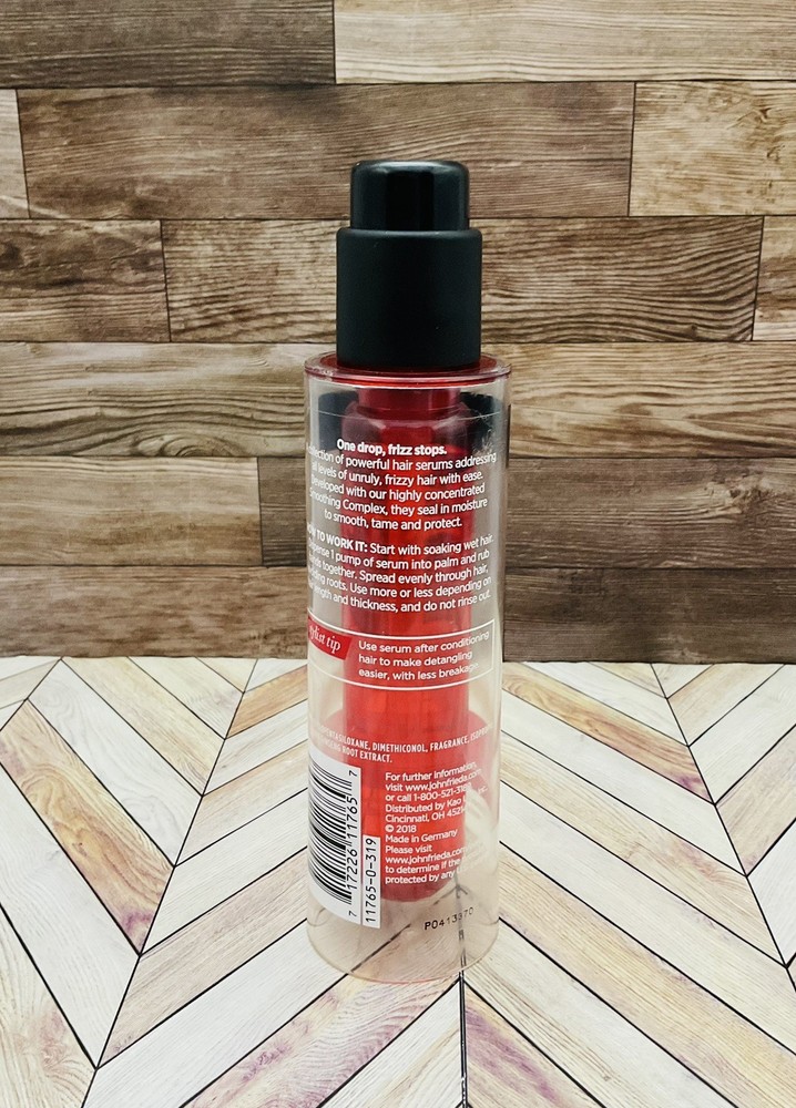 Brand: JOHN FRIEDA Size: 1.69 oz Hair Type: All Hair Types Volume: 1.69 fl oz UPC: 717226117657 Features: Contains Minerals Formulation: Oil Type: Serum Department: Unisex, Adult gtin13: 717226117657 Product Line: John Frieda Frizz Ease