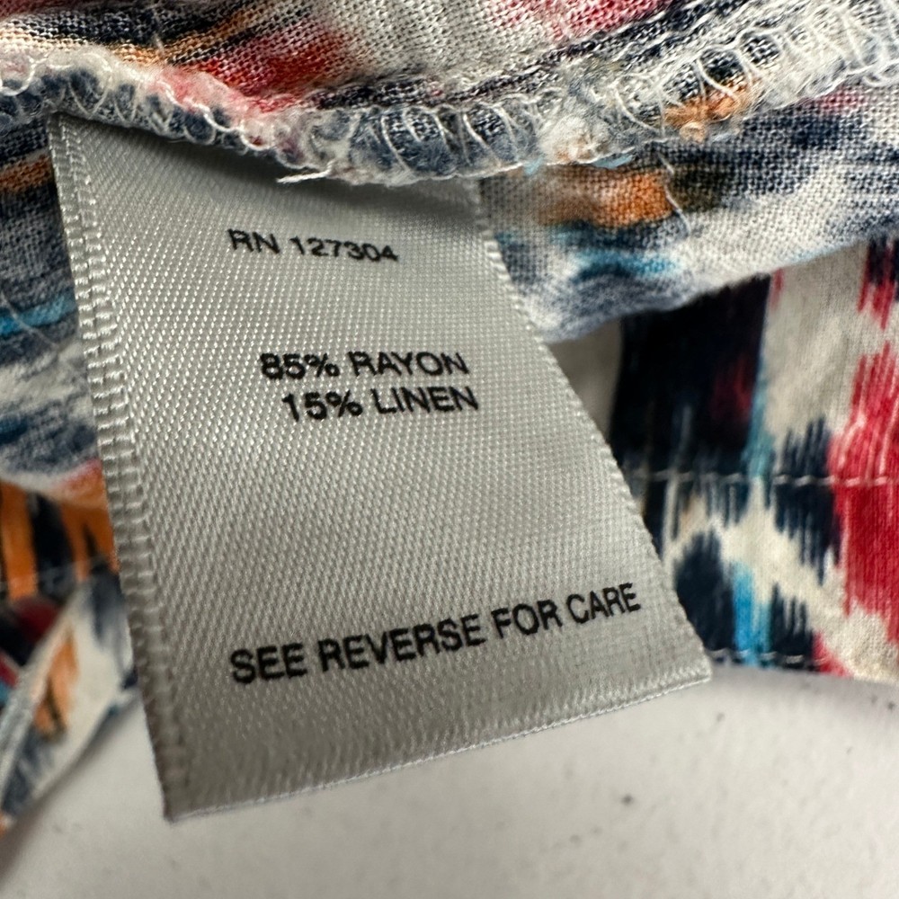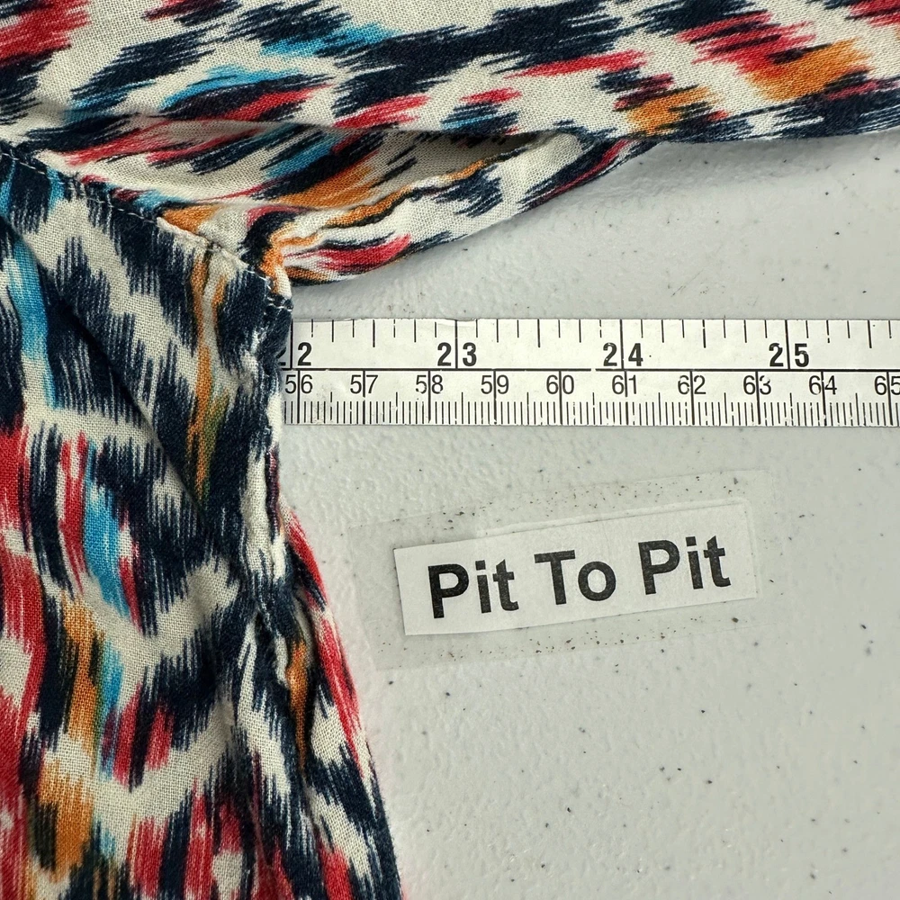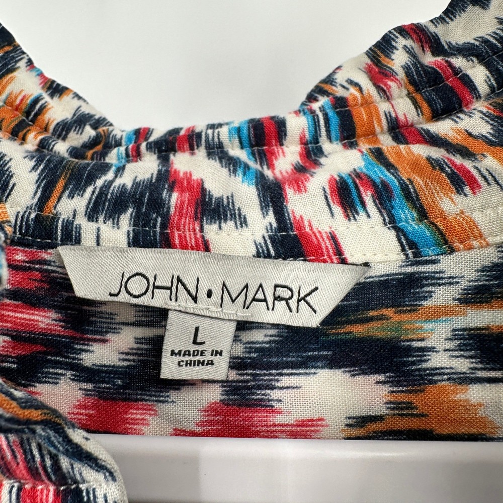 John Mark Womens Linen Blend Boho Ikat Tunic Top Size L Artsy Global Colorful Measurements: • Pit to pit: 22 inches • Shoulder to hem: 29 inches Color: Multicolor Type: Blouse Department: Women Style: Tunic Material: Rayon, Linen Blend, Linen Neckline: Mock Neck Sleeve Length: Long Sleeve Sleeve Type: Classic/Fitted Sleeve Accents: Button, Ruffle Pattern: Geometric Features: Ruffle Neck, Decorative Trim, Button-Down Front, Rayon Blend, Bohemian Style Keywords: John Mark, tunic top, bohemian, long sleeve, blouse, multicolor, women's, size L, boho chic, rayon blend, patterned top, casual top, stylish blouse bohemian linen tunic, artisan print blouse, eclectic artsy top, festival style shirt, ethnic ikat print, global chic fashion, casual vacation wear, lightweight summer tunic, artsy boho layering top, relaxed resort style blouse Please see photos for measurements