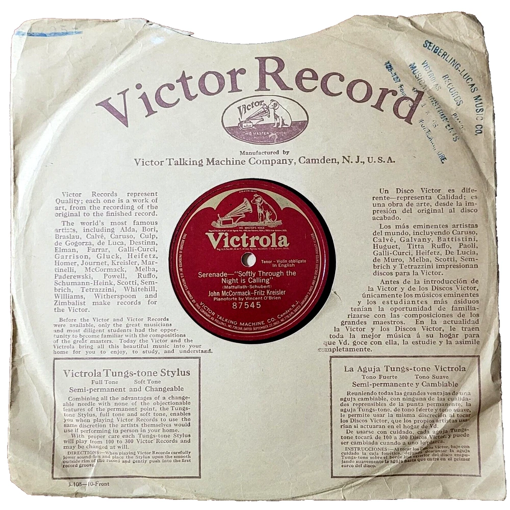 Vinyl Condition: E (hint of noise) Label Condition: See Photos Sleeve / Picture Sleeve Condition: New Generic / VG Company Sleeve Shipping Policy: Combined shipping discounts available $1.00 extra for each additional 10" 78rpm USA only. *Combined shipping will automatically update when you check out. "Add Items To Cart" and click check out. All 78's come in generic sleeves unless otherwise accompanied with original stock company sleeves or Picture sleeves. All items shipped using professional record mailers and materials. 78's shipped between 2 pieces of cardboard with padding in 78 mailers from bags unlimited. Grading Policy: Grading Definitions: All 78s spin cleaned and visually graded under bright LED light. Note: grading is for the vinyl only, see photos for label/sleeve condition. E+ (VG+) Plays like new, with very, very few signs of handling, such as tiny scuffs from being slipped in and out of jackets. Highest grade used unless new old stock. E (VG+) Still very shiny, near new looking, with no visible signs of wear, but a few inaudible scuffs and scratches. Hint of noise if any. E- (VG+) Still shiny but without the luster of a new record, few light scratches and scuffs. Hint to slight noise. V+ (VG) An average condition 78 in which scuffs and general use has dulled the finish somewhat. Wear is moderate but playing is generally free from distortion. Typically light noise. V (G+) Moderate, even wear throughout, but still very playable. Surface noise and scratches audible but not intrusive. Light to moderate noise generally. V- (G) Well used but quite playable still, but distortion and heavy greying in loud passages. Music remains loud in most passages. Surface noise and scratches well below music level. Typically moderate noise. P Well used but playable with heavy noise. Avid collector/seller since 2002 Vintage vinyl vinyls record records music 20s pop vocal ballad Feel free to contact me with any questions you may have. Happy record hunting!