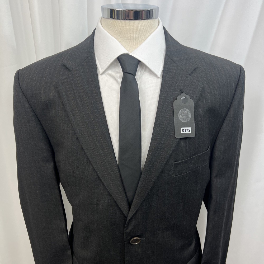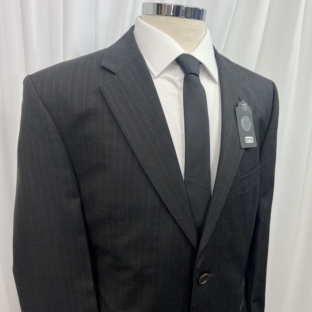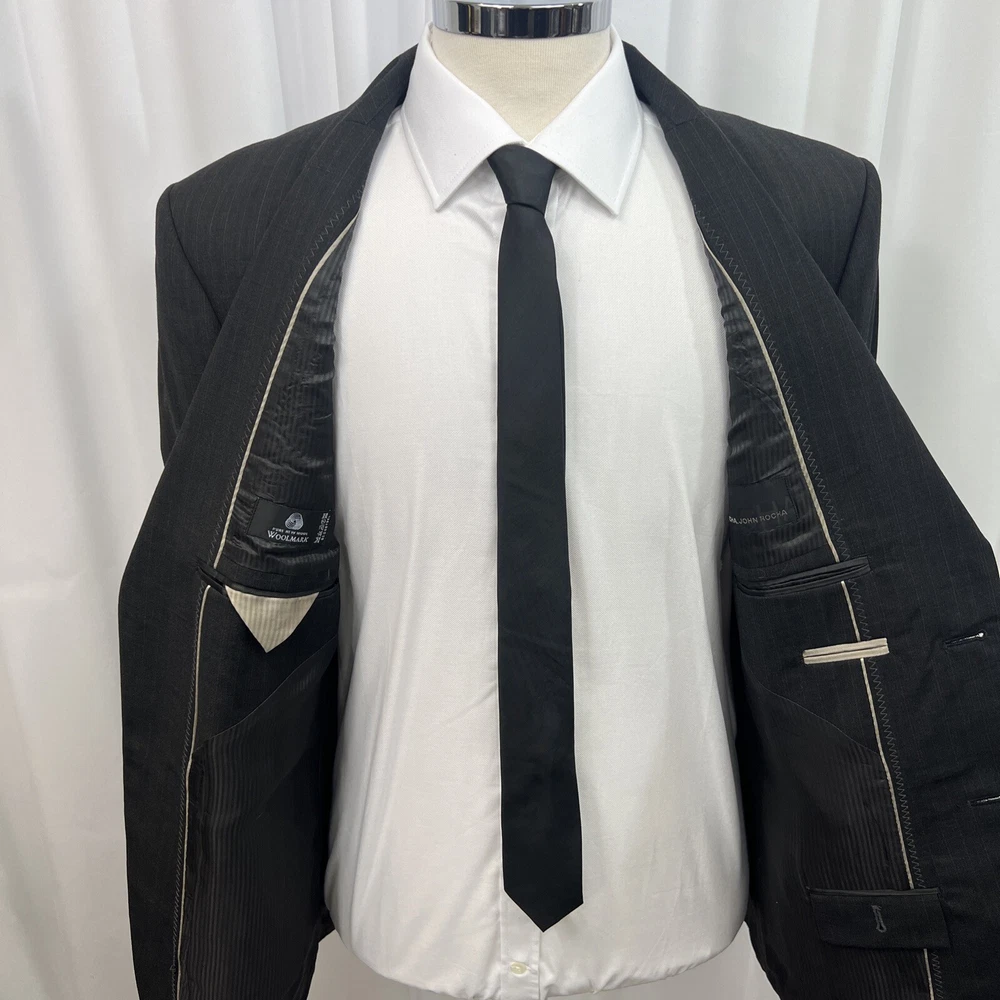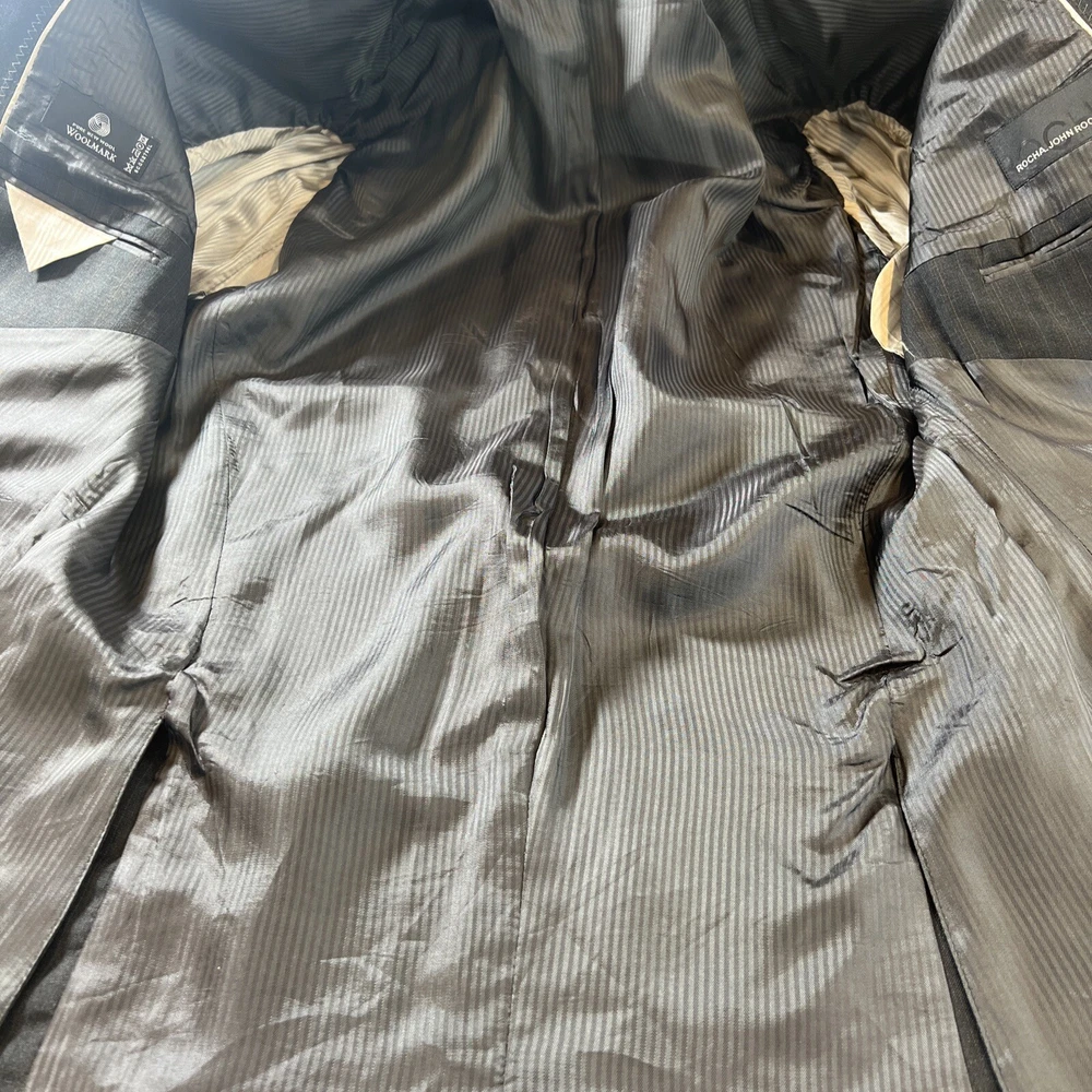 ROCHA JOHN ROCHA Charcoal stripe pure wool 2 piece suit Crafted from high-quality pure wool Jacket Chest: 42S Inside Pockets: 4 Front Pockets: 2 Breast Pocket: 1 Buttons To Each Cuff: 4 Buttons To Front: 2 Back Vents: 2 Shoulder To Cuff: 24.5" Armpit To Cuff: 15" Armpit To Armpit When Laid Flat: 22" Shoulder To Shoulder: 18.5" Collar to Hem: 30.5" Trousers Waist: 36" Zip Front Pockets: 2 Back Pocket: 2 with Button (1 button missing) 1 Button & 2 Hook Fastenings Inside Leg: 28.5" (Can Drop 1 1/2") Width of Hem at Bottom of Trousers: 9" Please note: Colours may slightly vary due to lighting conditions Each item undergoes meticulous hand-measured scrutiny; sizes may not align precisely with the label Review measurements and review the item description/photos before placing your bid Unfortunately, we cannot provide additional photos once items are listed The shirt and tie are not included unless explicitly stated in the listing Questions and concerns: Reach out to us through the ebay messaging system - we aim to respond within a maximum of 12 hours Ironing guidelines: Garments may arrive with minor creases Refer to the care label and use continuous steam when ironing We recommend dry cleaning for best results and peace of mind Your feedback matters: Please leave us a 5-star rating if satisfied For issues or concerns, please contact us before leaving feedback Returns: We offer a generous 30-day return period, via the ebay returns centre Please return items in their original packaging with all tags attached Buyers cover return shipping costs unless items are faulty or inaccurately listed