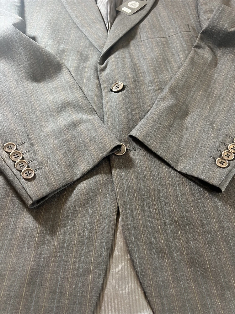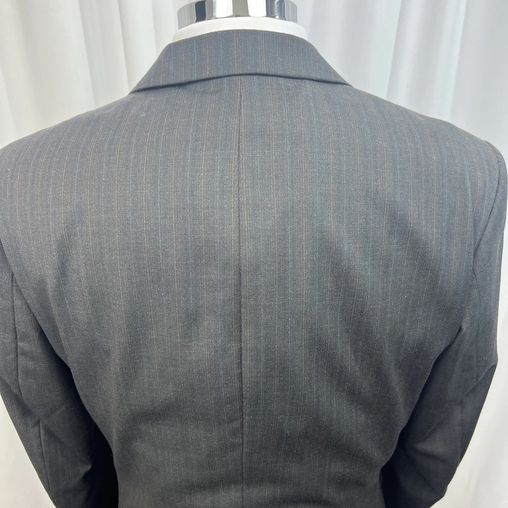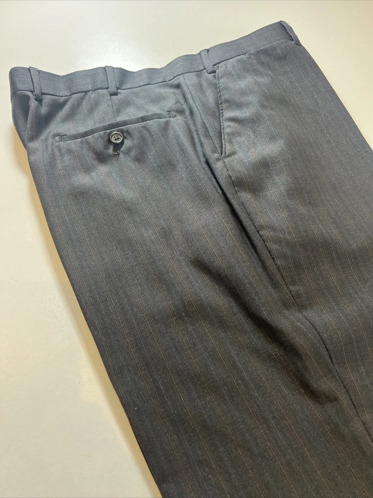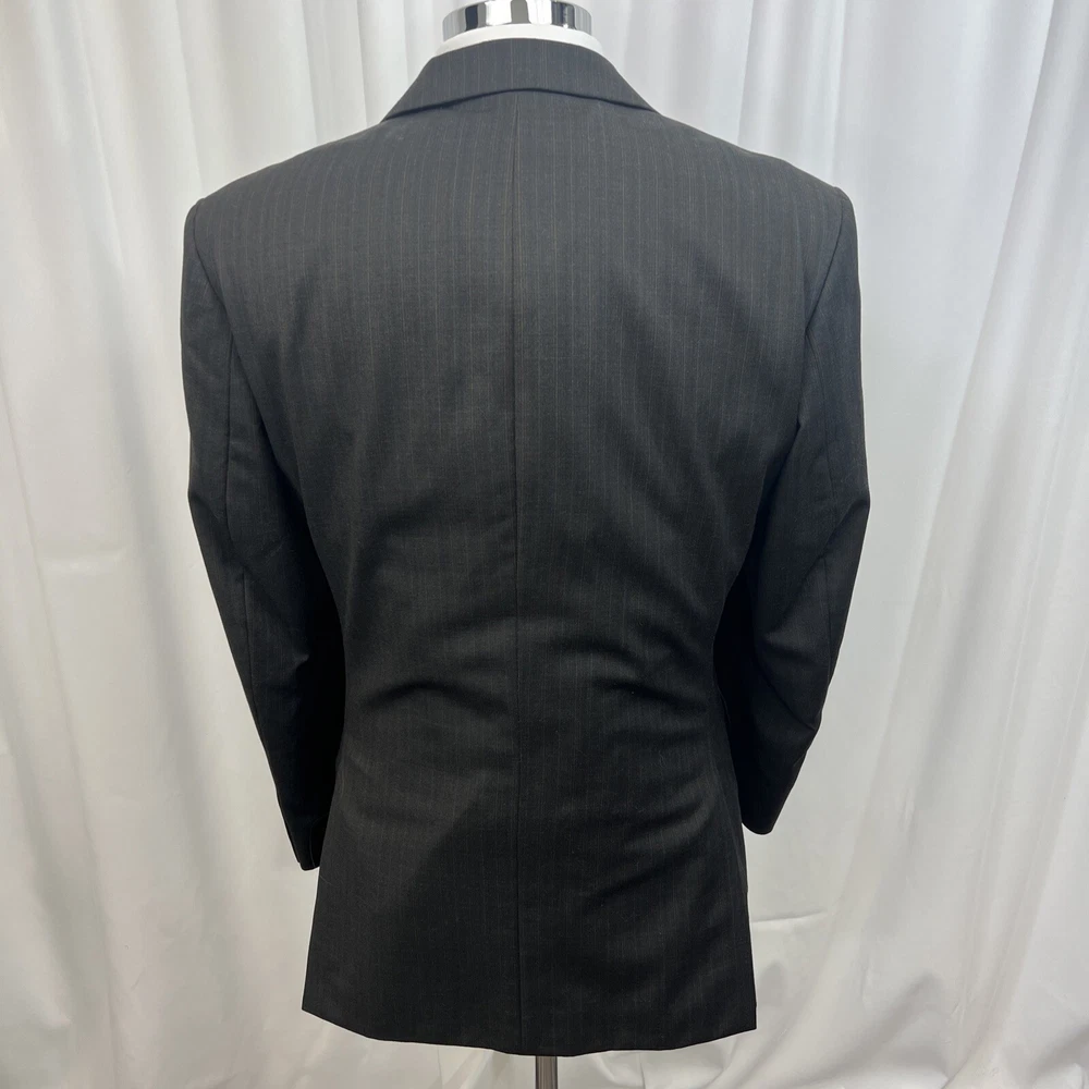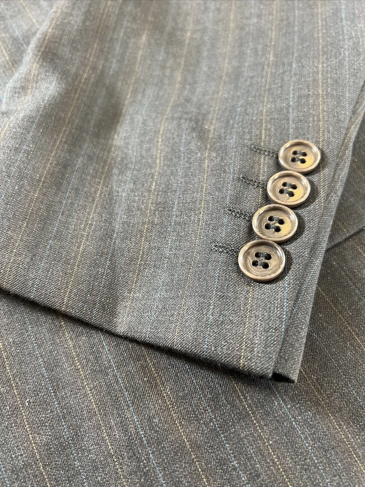 ROCHA JOHN ROCHA Charcoal stripe pure wool 2 piece suit Crafted from high-quality pure wool Jacket Chest: 42S Inside Pockets: 4 Front Pockets: 2 Breast Pocket: 1 Buttons To Each Cuff: 4 Buttons To Front: 2 Back Vents: 2 Shoulder To Cuff: 24.5" Armpit To Cuff: 15" Armpit To Armpit When Laid Flat: 22" Shoulder To Shoulder: 18.5" Collar to Hem: 30.5" Trousers Waist: 36" Zip Front Pockets: 2 Back Pocket: 2 with Button (1 button missing) 1 Button & 2 Hook Fastenings Inside Leg: 28.5" (Can Drop 1 1/2") Width of Hem at Bottom of Trousers: 9" Please note: Colours may slightly vary due to lighting conditions Each item undergoes meticulous hand-measured scrutiny; sizes may not align precisely with the label Review measurements and review the item description/photos before placing your bid Unfortunately, we cannot provide additional photos once items are listed The shirt and tie are not included unless explicitly stated in the listing Questions and concerns: Reach out to us through the ebay messaging system - we aim to respond within a maximum of 12 hours Ironing guidelines: Garments may arrive with minor creases Refer to the care label and use continuous steam when ironing We recommend dry cleaning for best results and peace of mind Your feedback matters: Please leave us a 5-star rating if satisfied For issues or concerns, please contact us before leaving feedback Returns: We offer a generous 30-day return period, via the ebay returns centre Please return items in their original packaging with all tags attached Buyers cover return shipping costs unless items are faulty or inaccurately listed