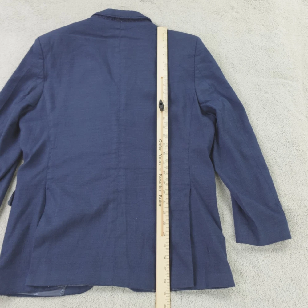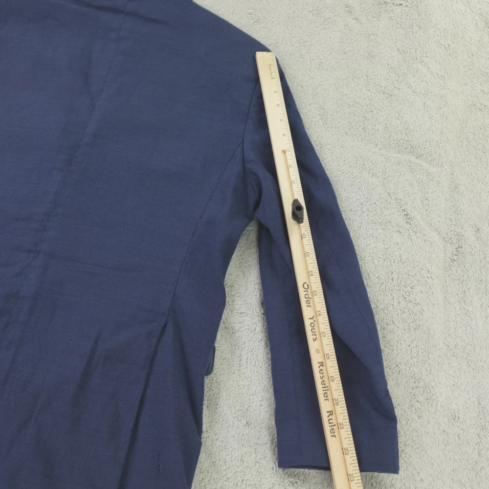 John Varvatos Blazer Mens 44R Navy Blue Wool Blend Marzotto Sport Coat. Blazer is in good pre-owned condition, one flaw is noted on the back bottom right of the blazer as pictured, one of the buttons on the sleeve cuff is partially broken as pictured, no stains, tears, or other signs of wear noted, please review all photos. See photos for measurements. If we missed something, don't worry, we offer free returns. Just indicate, "just didn't like it," for any reason, and we'll pay for the return. Thanks for visiting!