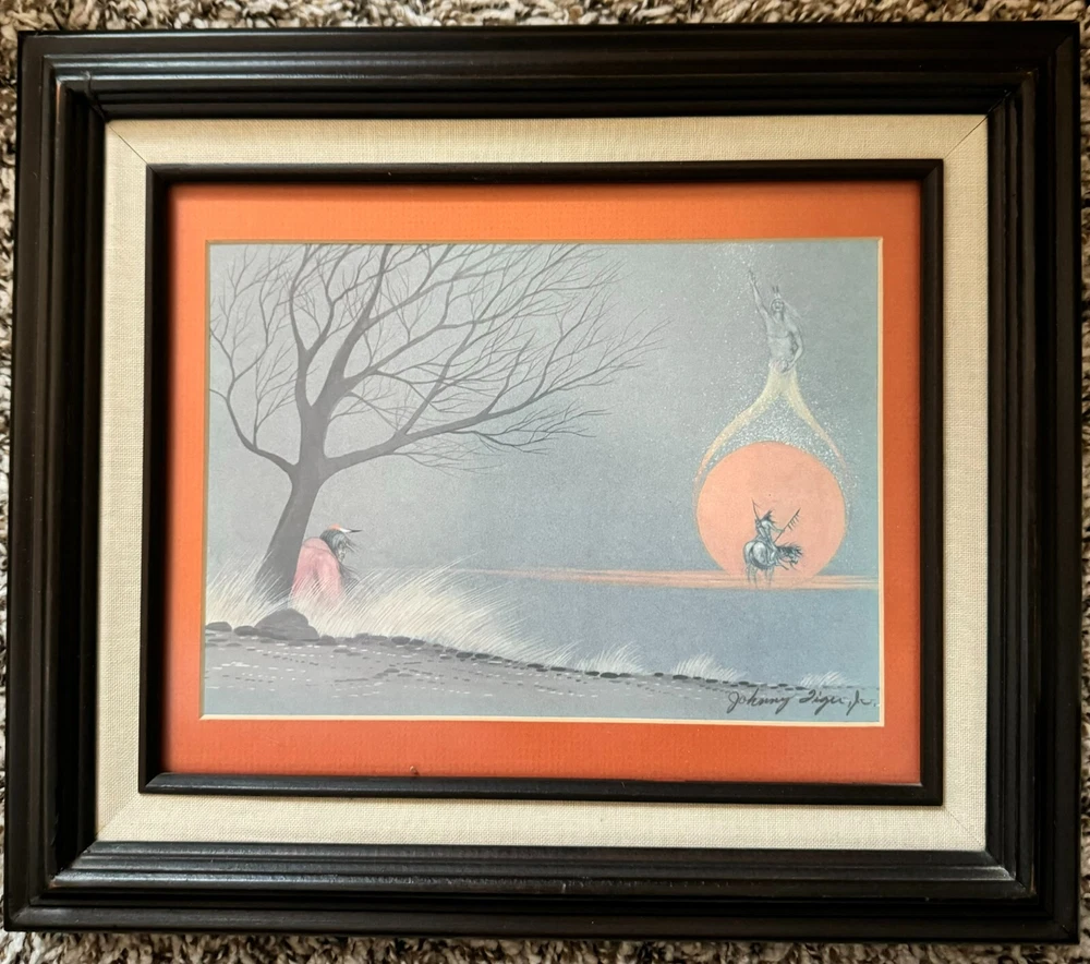 A Johnny Tiger, Jr. original, 'Seeing the Spirit Call', 8X10 print, with frame measures 14X12" landscape