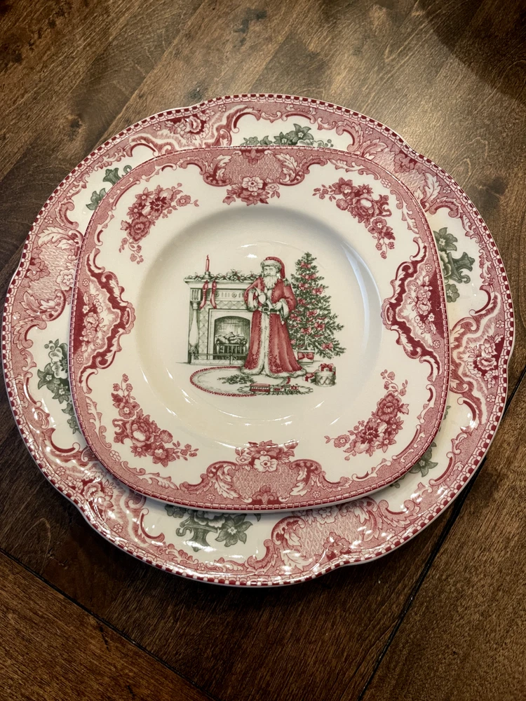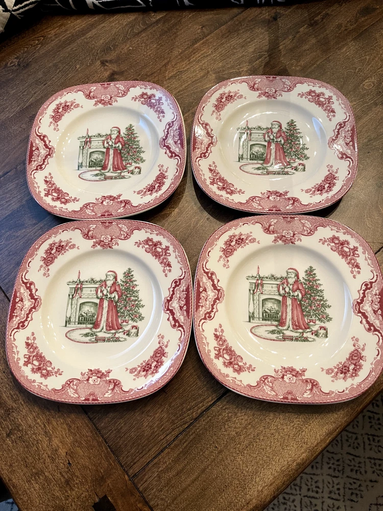 This holiday, indulge in the many joys of the holiday season, including a table beautifully set with Old Britain Castles Pink Christmas. This charming Victorian-style pattern, now featuring pink and spruce green designs, will make a holiday table instantly merry. This holiday season, embrace the joys of celebrating with a beautifully set table featuring the Old Britain Castles Pink Christmas pattern. This charming Victorian-style design, adorned with pink and spruce green elements, will instantly bring a festive spirit to your holiday gatherings. The Old British Castles pattern is one of the most renowned collections from Johnson Brothers and has been in production since 1930. This uniquely shaped square salad plate measures 7 3/4" and depicts a nostalgic Santa placing gifts under a Christmas tree. These fabulous plates are perfect for serving your favorite salads or appetizers. The Old British Castles Pink Christmas Accent Salad Plate is also suitable for the dishwasher, freezer, and microwave. Keep in mind, the Old Britain Castles Pink Christmas collection by Johnson Brothers has been discontinued, making these sets truly rare finds that you won’t want to miss. I have four sets available, all gently used yet in excellent, like-new condition. Don’t forget to check my other listings for rare and coordinating dinnerware and serving pieces to complete this beautiful collection!