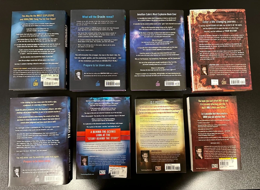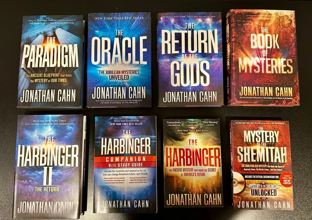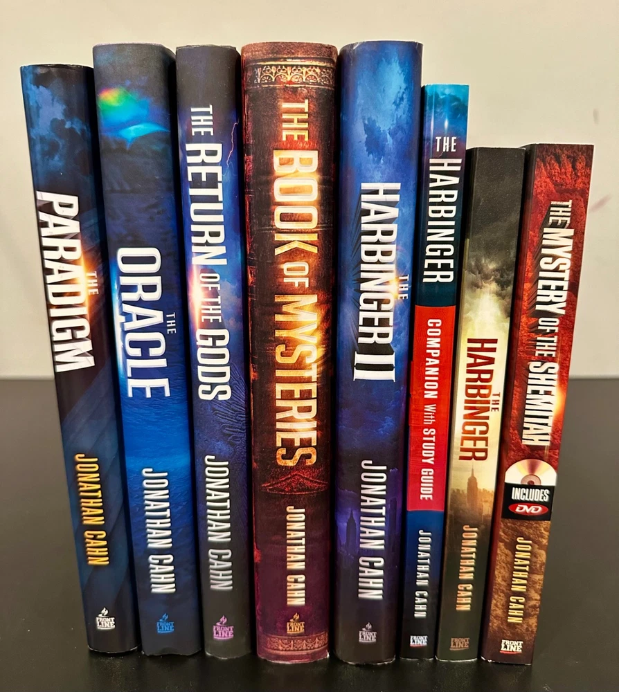 Jonathan Cahn 8 Book Lot. Titles Include - The Paradigm: The Ancient Blueprint that Holds the Mystery of Our Times, The Oracle: The Jubilean Mysteries Unveiled, The Return of the Gods, The Book of Mysteries, The Harbinger II: The Return, The Harbinger Companion with Study Guide, The Harbinger: The Ancient Mystery that Holds the Secret of America's Future, The Mystery of the Shemitah: The 3,000 Year Old Mystery that Holds the Secret of America's Future, the World's Future, and Your Future! Ships free via USPS Media Mail.