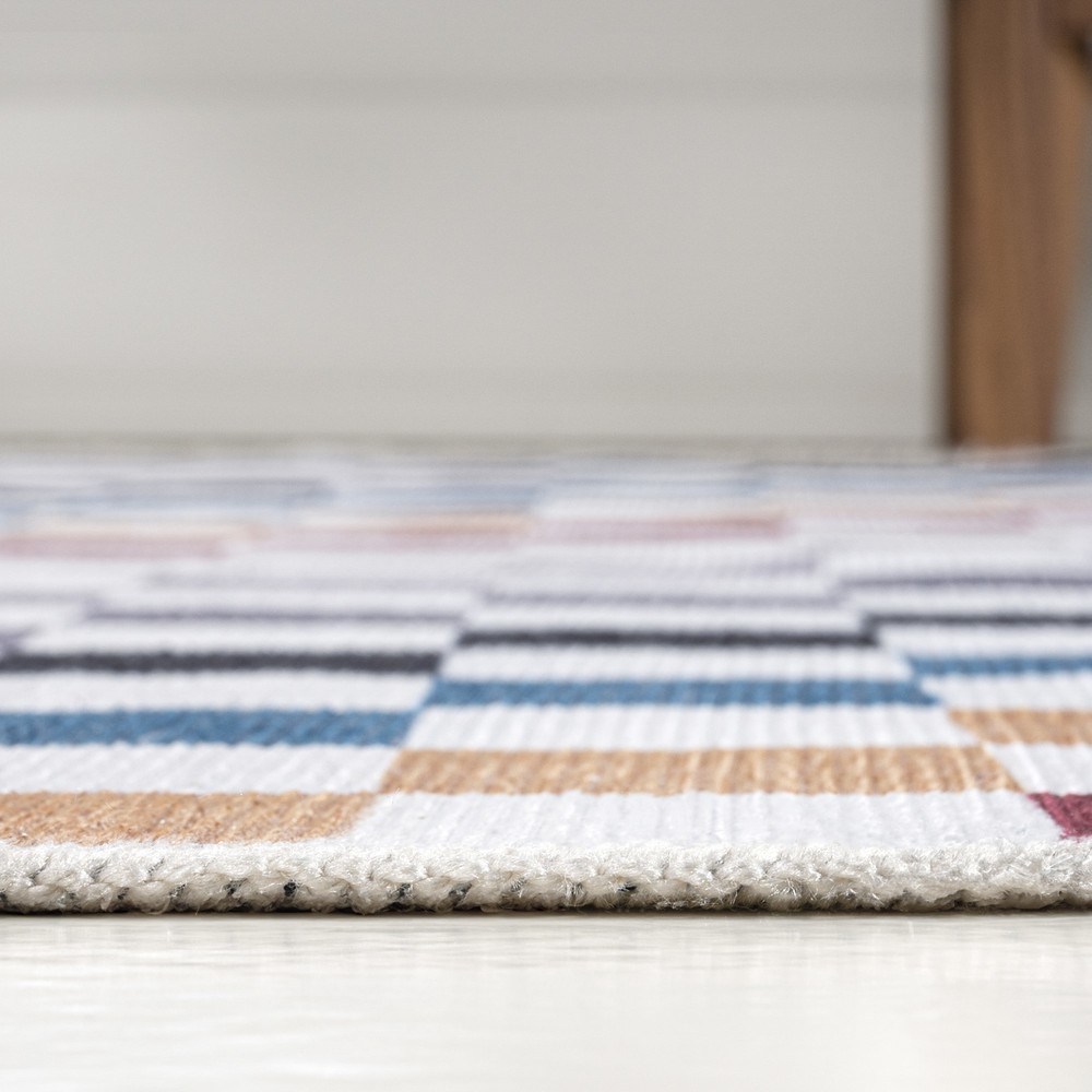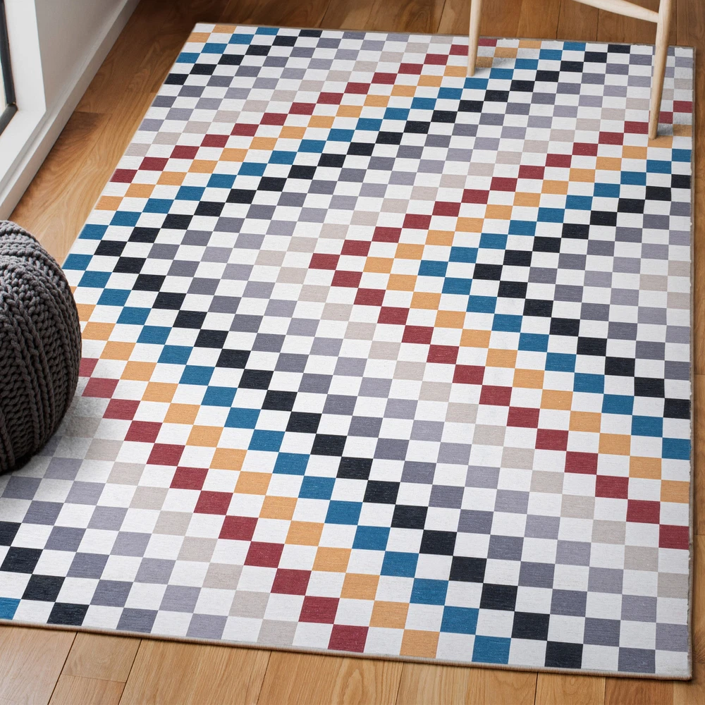 This vibrant rug instantly brightens any room with its playful geometric pattern and soft chenille texture. Perfect for high-traffic areas, it’s both durable and easy to clean—just toss it in the wash! The plush feel underfoot adds cozy comfort, while the cotton backing keeps it from slipping. Ideal for living rooms, kids' spaces, or entryways, it’s a stylish and practical choice that holds up well to daily wear. Love how it brings a cheerful pop of color without being overwhelming!