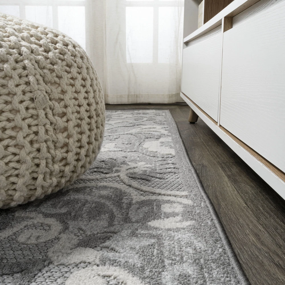This rug is a game-changer! The Moroccan-inspired medallion design adds a stylish, modern touch to any space, indoors or out. Super easy to clean—perfect for busy homes with kids and pets. The light gray color blends seamlessly, and the polypropylene material holds up beautifully. Love how it elevates my patio with boho charm while being durable enough for daily use. Highly recommend!