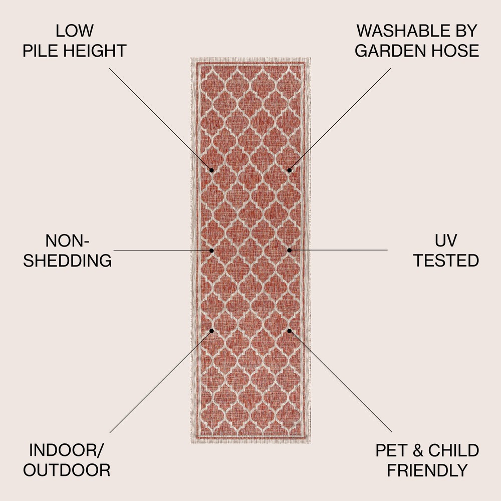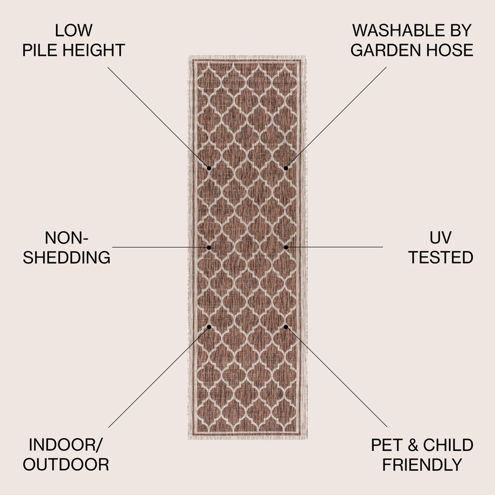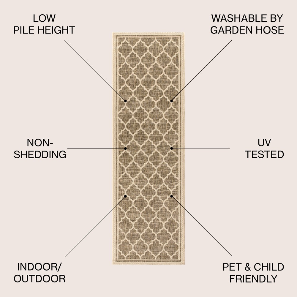 This stylish runner adds a touch of exotic charm to any space, indoors or out! The Moroccan-inspired geometric pattern is eye-catching yet versatile, blending well with both modern and traditional decor. Made from durable polypropylene, it holds up beautifully in high-traffic areas and resists water, making it perfect for patios or entryways. The flatweave design is easy to clean, and the espresso/taupe color combo adds warmth without overpowering a room. Lightweight yet sturdy, it’s a great choice for anyone wanting to add texture and character to their floors. Highly recommend for its quality and timeless appeal!