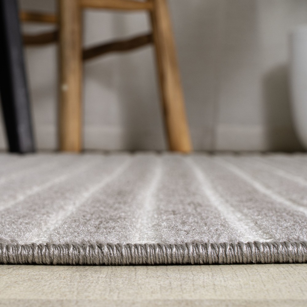 Love this rug! The stripes give a fresh, modern look that fits perfectly in my living room. Durable and easy to clean, it handles daily foot traffic without showing wear. The two-tone colors add subtle style, and the polypropylene material works great for both indoor and outdoor use. Lightweight yet sturdy—highly recommend!