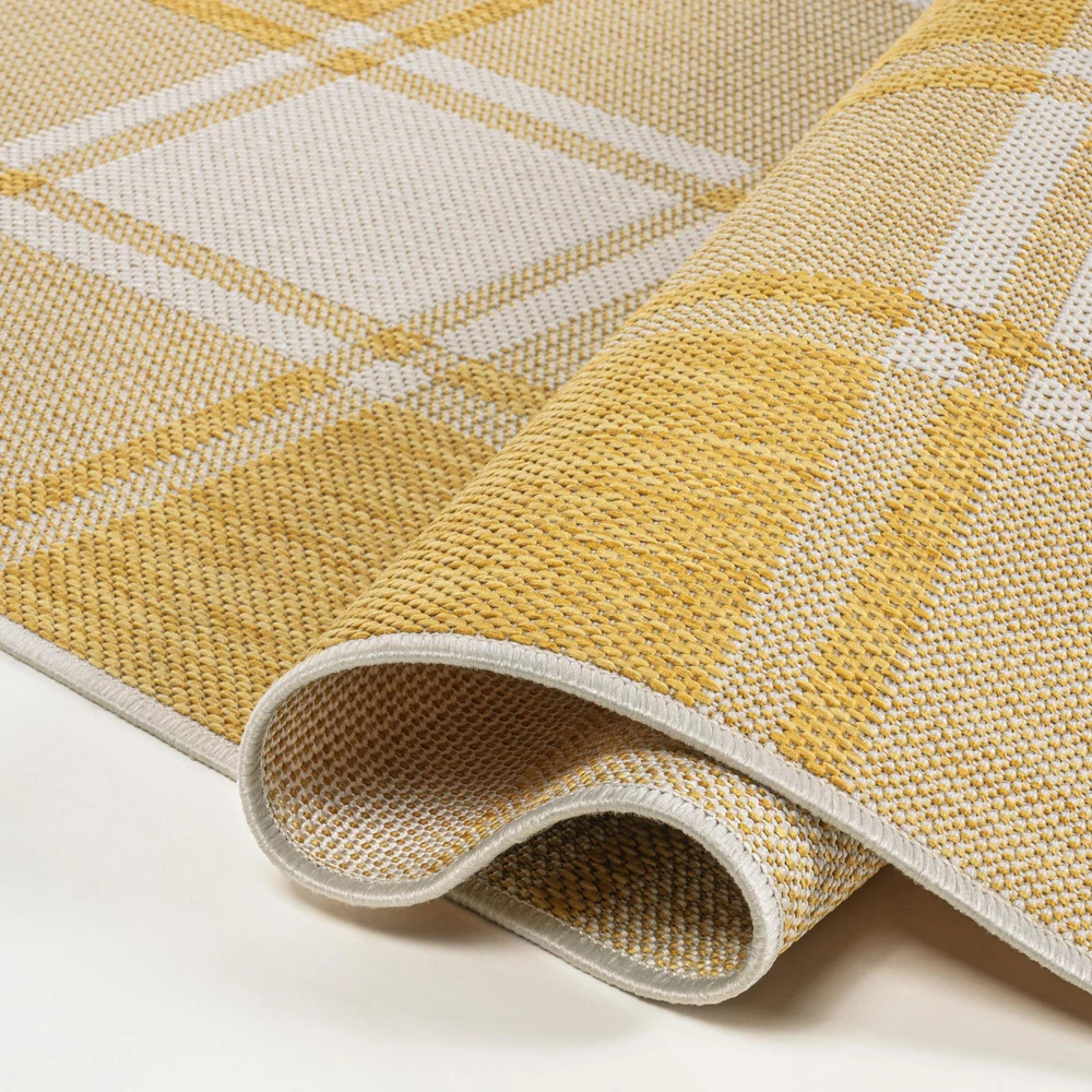 Absolutely love this rug! The vibrant Tuscan Sun colors brighten up any space, indoors or out. The polypropylene fabric is super durable and easy to clean—perfect for high-traffic areas. The geometric plaid design adds a charming cottage vibe, and the size is just right for cozying up a room or porch. Great quality for the price, highly recommend!