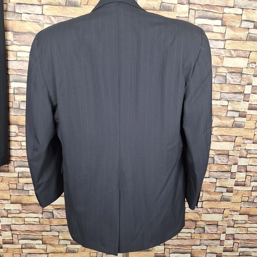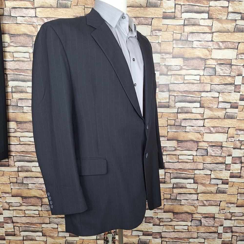 Joseph A Bank 2 Piece Suit Mens 48R 40X29 Black Stripe Wool Single Vented Quality used condition. Please check out the measurements before buying to ensure a perfect fit.Does have a fair Amount of Shoulder padding Shirt Size on Label 48R Shoulder- Hem 31.00'' Shoulder- Shoulder 21.00'' Shoulder- Wrist 24.50'' Armpit- Armpit 25.00'' Top button 24.00'' Everything ships within a day. Feel free to message me with any questions. Thank you very much. 12/9/24 Pants Pleated Cuffed Lined Quality used condition. Please check out the measurements before buying to ensure a perfect fit. Pants Size on Label Seam (Outer) 40.00'' Waist 38.00'' Waist- Crotch 12.50'' Inseam 29.00'' Extra inseam fabric 1.40'' Everything ships within a day. Feel free to message me with any questions. Thank you very much. 12/9/24