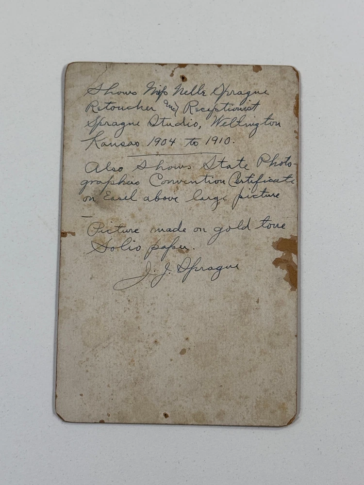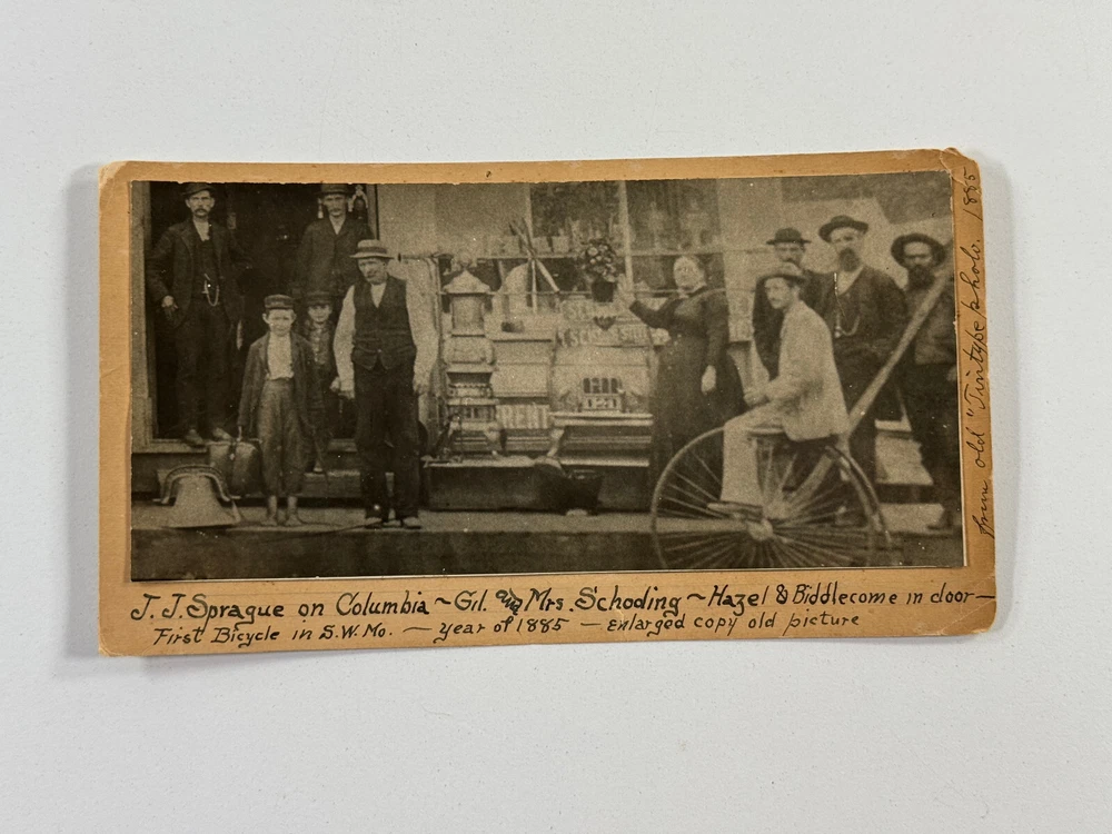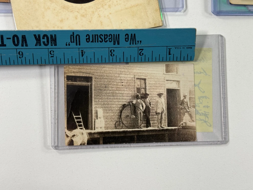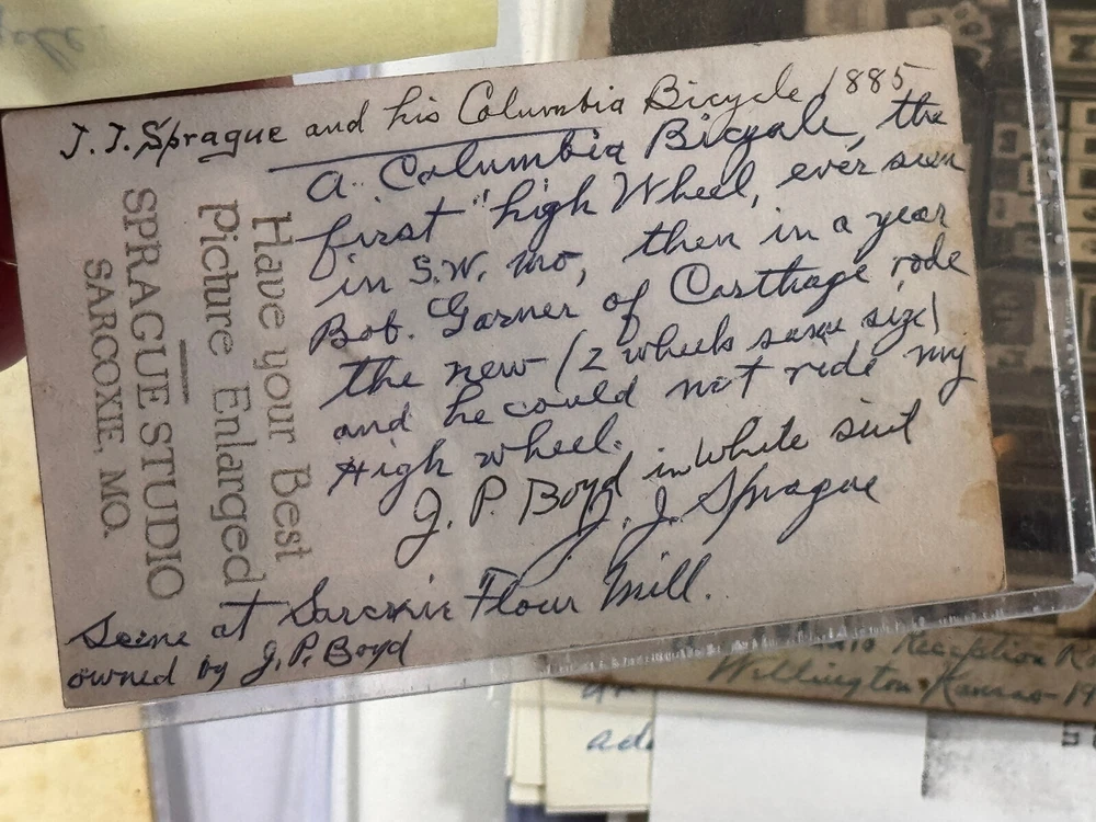 Terrific group of photos of Sarcoxie MO photog Joseph Sprague! This lot includes everything you see! Including four negatives and prints of JJ and an exterior of a hardware building, a cabinet card photo showing JJ his wife and their two children, a RARE cabinet photo showing the waiting room of his studio in Wellington Kansas, two photos showing JJ and his beloved Columbia Bicycle (which is stated to have been the first in SW Missouri), a self portrait of JJ, a letter and some family history! See photos! Ask questions! I'm sorry we dont break our lots! STORE POLICIES Please look closely at the item photos they are the best indication of condition. Please ask questions BEFORE you purchase an item. All of our items are sold AS-IS. No returns please. All offers considered, first reasonable offer accepted! We reserve the right to adjust the mode of shipping. WE NEVER BREAK OUR LOTS. Thanks! We ship all items within 3 business days . Larger items may take longer. We have been buying and selling in Southwestern Kansas for almost 20 years! Thank you for your purchases and support of our small business!
