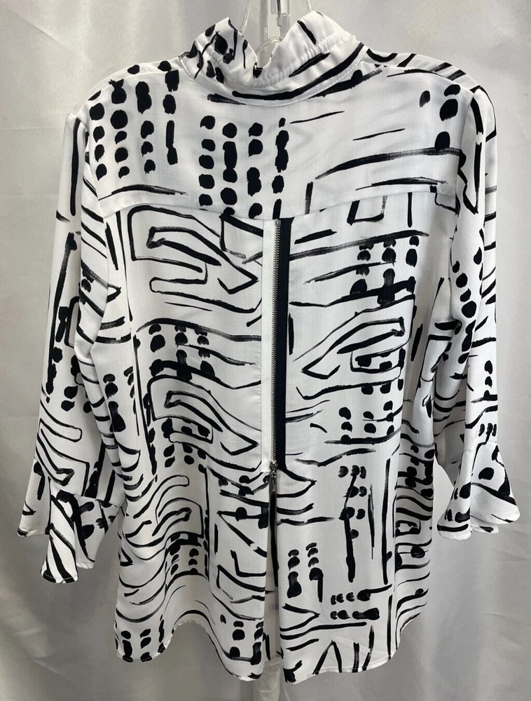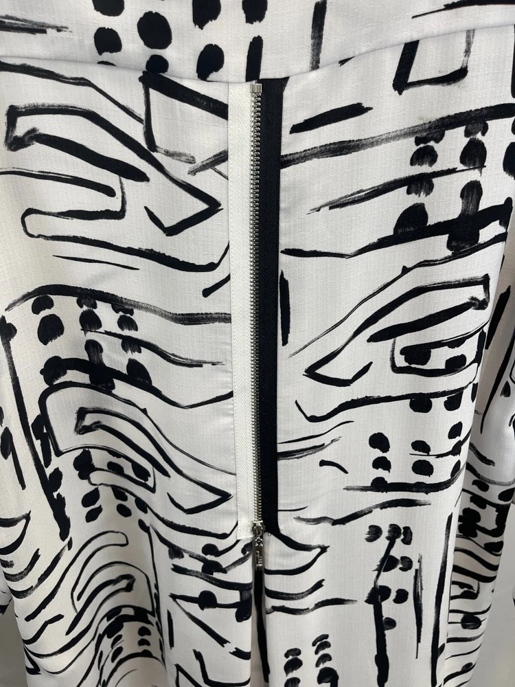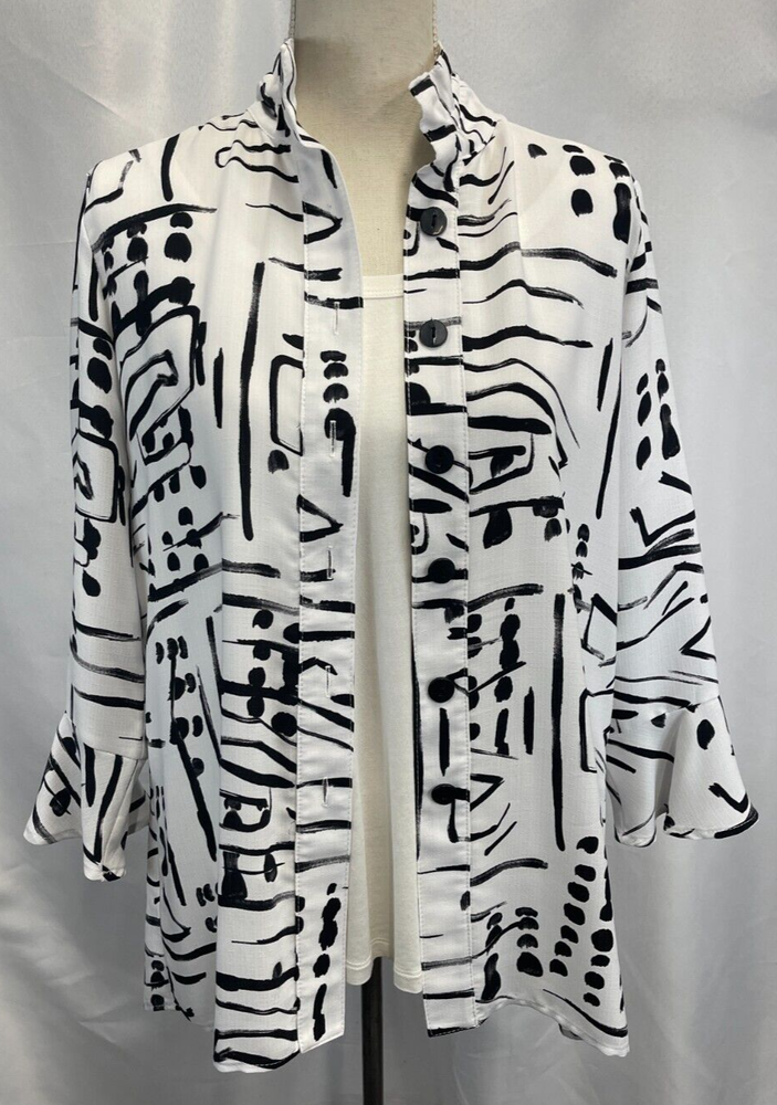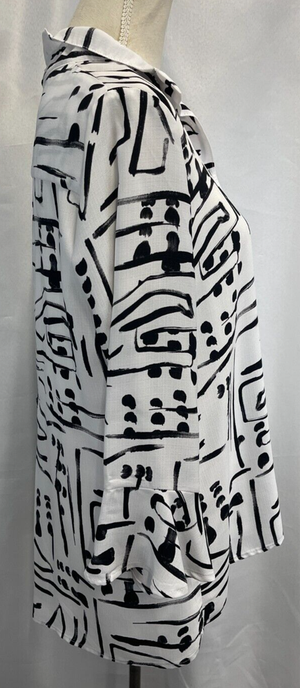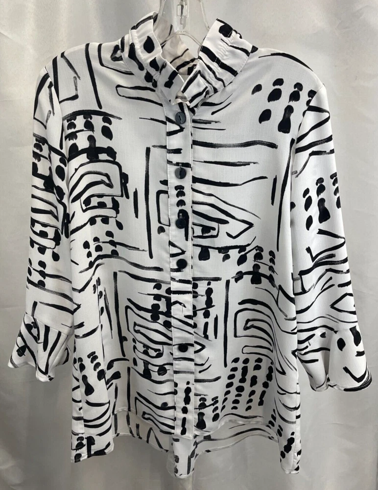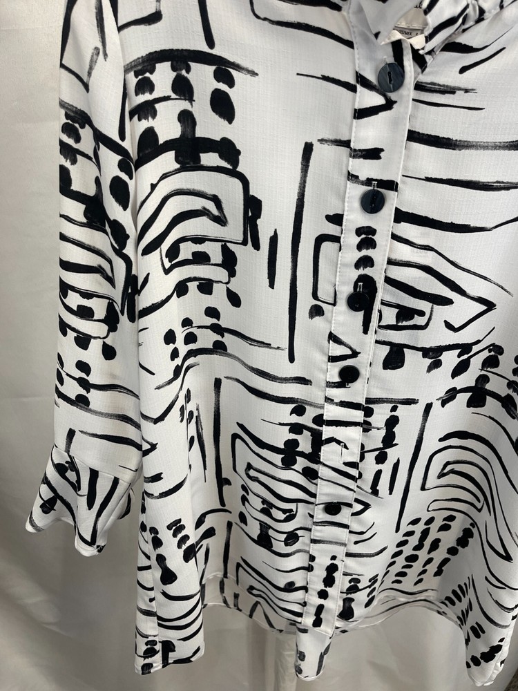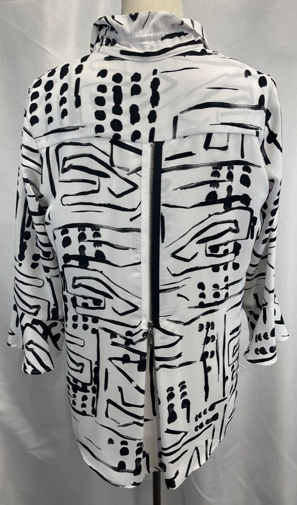 Joseph Ribkoff Graphic Abstract Print Black White Button Flutter Blouse Size 6