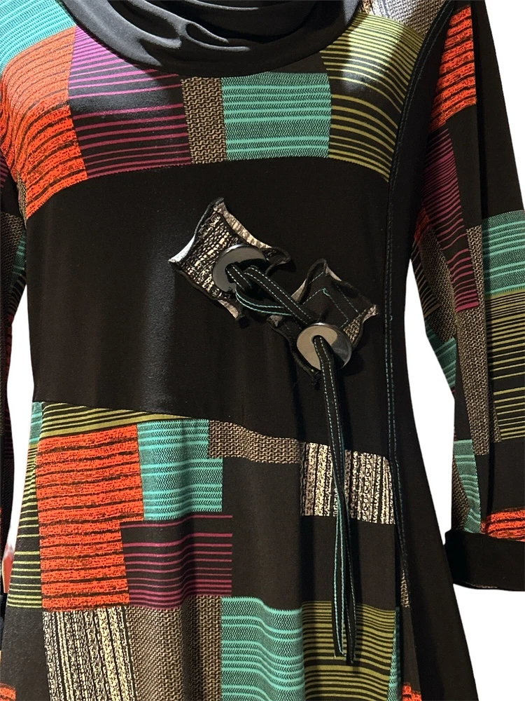 This Joseph Ribkoff dress/tunic in a size 10 is the perfect addition to your wardrobe. The multicolored color block pattern is fun and vibrant, while the long sleeves and short length make it versatile for any occasion. The soft style and colorful theme make this piece a standout item that you'll love to wear. The item is pre-owned, but in excellent condition. It has been well-maintained and cared for, so you can be sure that you are getting a quality piece. Don't miss out on this opportunity to add a stylish and unique dress/tunic to your collection. The material/care tag is missing. Unsure of material. Very soft with some stretch. Would pair beautifully with a pair of leggings! Measurements Chest: armpit to armpit 17” Length: shoulder to end 29” Shoulder seam to seam: 15”