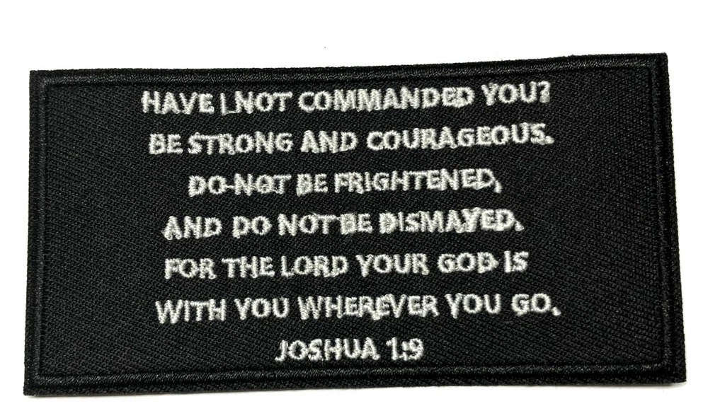 Joshua 1:9 Bible Verse Patch 4" W x 2" T Embroidered Iron-On Decorative Applique