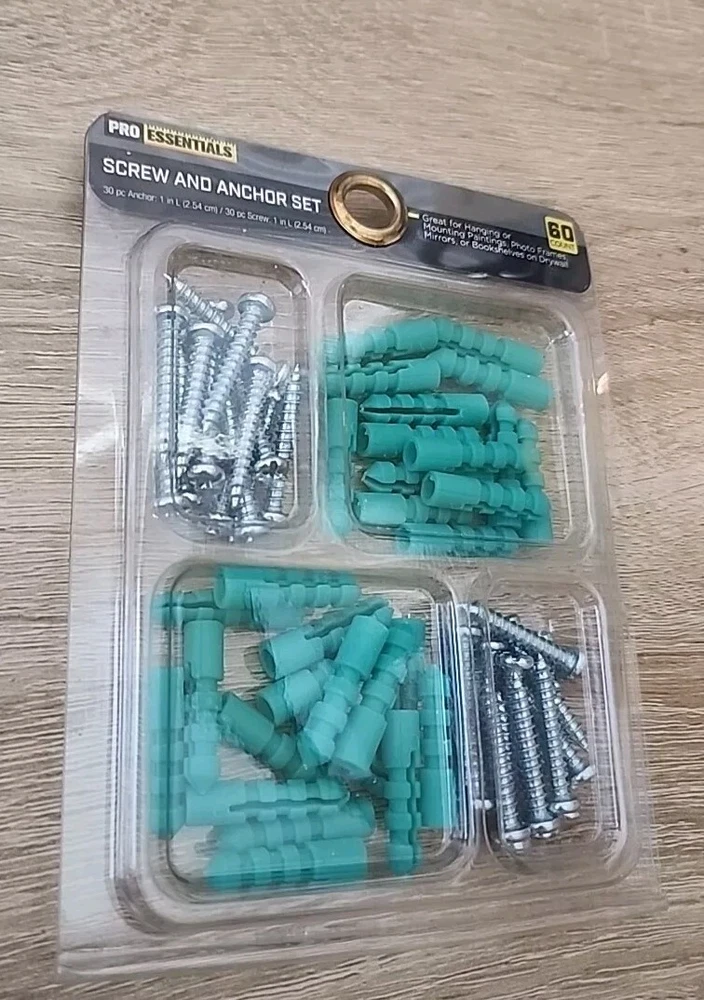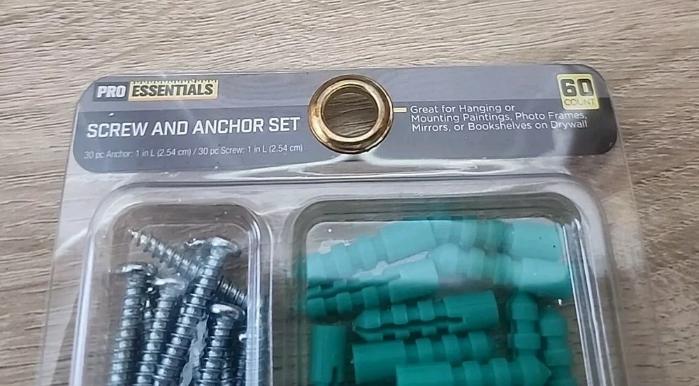 Juego de tornillos y anclajes de pared Pro Essentials enchufes de expansión 60 unidades (4 juegos)