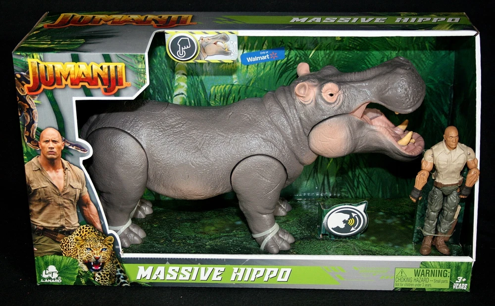 Walmart exclusive Lanard 2019 Jumanji figure lot of Charging Rhino and Massive Hippo new in package. Figures make realistic sound and their head moves when pressing the button on their back. Hippo figure measures approx. 11" in length and uses 3 AG13/LR44 batteries (included). Thanks for looking and check out my store. I ship next business day after payment is received.