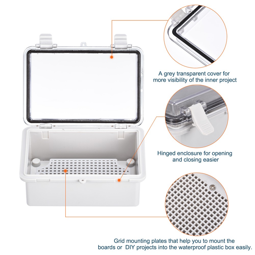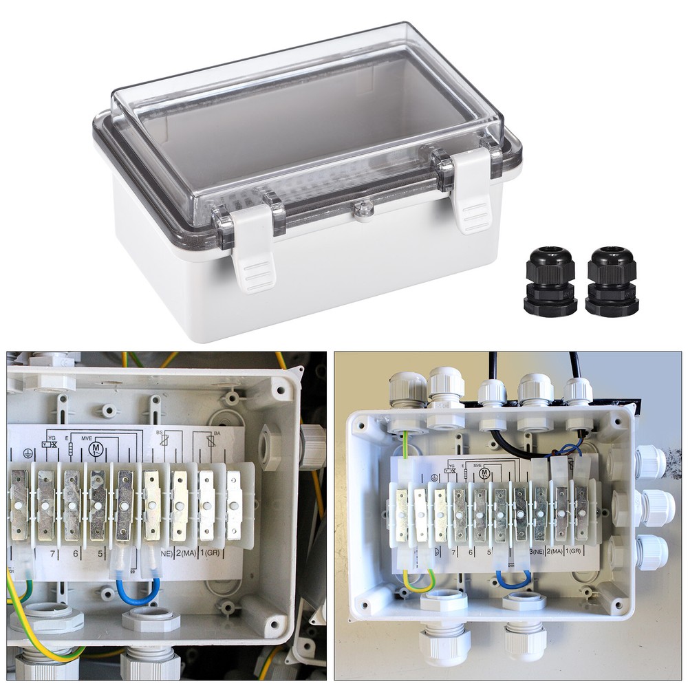 Document What is this?The waterproof IP67 junction box is made of ABS plastic, durable and light weight, and easy to install, suitable for electric controlling, transmission, and other maintenance, repair, and operation applications.What will I get?Junction box, is in size of: Outer Size(Approx.): 150mm x 100mm x 70mm / 5.9 inch x 3.9 inch x 2.8 inch(L*W*H); Inner Size(Approx.): 130mm x 81mm x 63mm / 5.12 inch x 3.19 inch x 2.46 inch(L*W*H)In the package of: 1 Set x junction boxAre there any advantages of the product?The electrical junction box reaches to IP67 waterproof standard, protected from rain and water splash back, keeping your inside joining wires or electrical components dry.Hinged enclosure for opening and closing easier; a grey transparent cover for more visibility of the inner project; grid mounting plates that help you to mount the boards or DIY projects into the waterproof plastic box easily.How to use it?Steps of installation: 1. Assemble the module or the components in the box; 2. Drilling the proper hole if it is necessary; 3. Snap the cover to seal the box.What should I notice?Please Note: All sizes are measured manually, please allow +/-0.5 inch error. Please select the appropriate size of a junction box. 105mm x 65mm x 25mm Dustproof IP65 Plastic Electrical Junction Case Box Black USD 11.5 Black Plastic Dual Capacitor Protector Junction Box 197mm x 133mm x 62mm USD 16.17 4PCS Dustproof IP65 Electronic Switch Protector Junction Box 60mm x 35mm x 25mm USD 9.36 2PCS Waterproof IP68 3 Pole Outdoor External Junction Box for 4-8mm Cable Range USD 15.37 Waterproof Outdoor 3Way Electrical Junction Box 131x107x37mm with Terminal Strip USD 14.25 Wall Switch Box Electrical Outlet Surface Mounting Cassette Single Gang USD 7.13 Junction Box Electrical Enclosure IP67 Waterproof ABS Plastic with Hinged Cover What is this? The waterproof IP67 junction box is made of ABS plastic, durable and light weight, and easy to install, suitable for electric controlling, transmission, and other maintenance, repair, and operation applications. What will I get? Junction box, is in size of: Outer Size(Approx.): 150mm x 100mm x 70mm / 5.9 inch x 3.9 inch x 2.8 inch(L*W*H); Inner Size(Approx.): 130mm x 81mm x 63mm / 5.12 inch x 3.19 inch x 2.46 inch(L*W*H) In the package of: 1 Set x junction box Are there any advantages of the product? The electrical junction box reaches to IP67 waterproof standard, protected from rain and water splash back, keeping your inside joining wires or electrical components dry. Hinged enclosure for opening and closing easier; a grey transparent cover for more visibility of the inner project; grid mounting plates that help you to mount the boards or DIY projects into the waterproof plastic box easily. How to use it? Steps of installation: 1. Assemble the module or the components in the box; 2. Drilling the proper hole if it is necessary; 3. Snap the cover to seal the box. What should I notice? Please Note: All sizes are measured manually, please allow +/-0.5 inch error. Please select the appropriate size of a junction box. Hot Item 100 x 60 x 25mm Electronic Plastic DIY Junction Project Box Enclosure Case USD 6.42 200*150*100mm Electronic ABS Plastic DIY Junction Box Enclosure Case Gray USD 30.46 Wall Switch Box Electrical Outlet Surface Mount Cassette 2 Gang 2pcs USD 14.91 Aluminum Enclosure Electronic Power DIY Junction Project Box 110x66x43mm Black USD 16.94 Waterproof Junction Box Enclosure ABS Clear Electronic Project Case 158x90x64mm USD 18.99 Payment We accept eBay payment. Please do not email us to ask for other payment option. We appreciate prompt payment and look forward to your business in the future. Unpaid item will be filed without receiving payment in 7 days from listing ended. Shipping Usually we ship your order out within 24 hours in business day. For shipping and handling charges (S&H) for specific item, please refer to the item listing page for more details. Please make sure your shipping address is correct. We are not responsible for any loss in transit if a wrong address is provided. Return Policy Returns for exchange are permitted and must be initiated by the buyer within 30 days upon receipt. If you would like to return your product(s) for repair / replacement / refund, please kindly contact our customer service representatives via email for an authorized RMA number. Your returned product(s) will not be processed without a completed RMA. About Us We are continually expanding our product selection to better serve your need. We look forward to providing the best sevice to you - our dear customers, so take a look around our store and find the product that you want. You can put your trust in us! If you need any help or have any suggestions, please don't hesititate to contact us anytime , we will reply you within 24 hours and try the best to help you. Description Policy Junction Box Electrical Enclosure IP67 Waterproof ABS Plastic with Hinged Cover What is this? The waterproof IP67 junction box is made of ABS plastic, durable and light weight, and easy to install, suitable for electric controlling, transmission, and other maintenance, repair, and operation applications. What will I get? Junction box, is in size of: Outer Size(Approx.): 150mm x 100mm x 70mm / 5.9 inch x 3.9 inch x 2.8 inch(L*W*H); Inner Size(Approx.): 130mm x 81mm x 63mm / 5.12 inch x 3.19 inch x 2.46 inch(L*W*H) In the package of: 1 Set x junction box Are there any advantages of the product? The electrical junction box reaches to IP67 waterproof standard, protected from rain and water splash back, keeping your inside joining wires or electrical components dry. Hinged enclosure for opening and closing easier; a grey transparent cover for more visibility of the inner project; grid mounting plates that help you to mount the boards or DIY projects into the waterproof plastic box easily. How to use it? Steps of installation: 1. Assemble the module or the components in the box; 2. Drilling the p