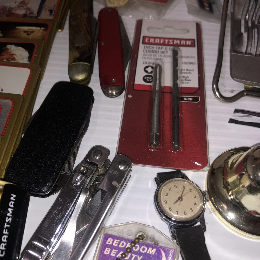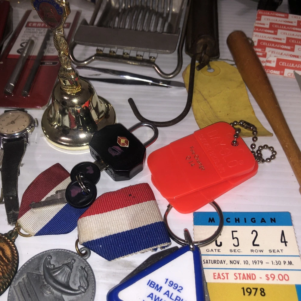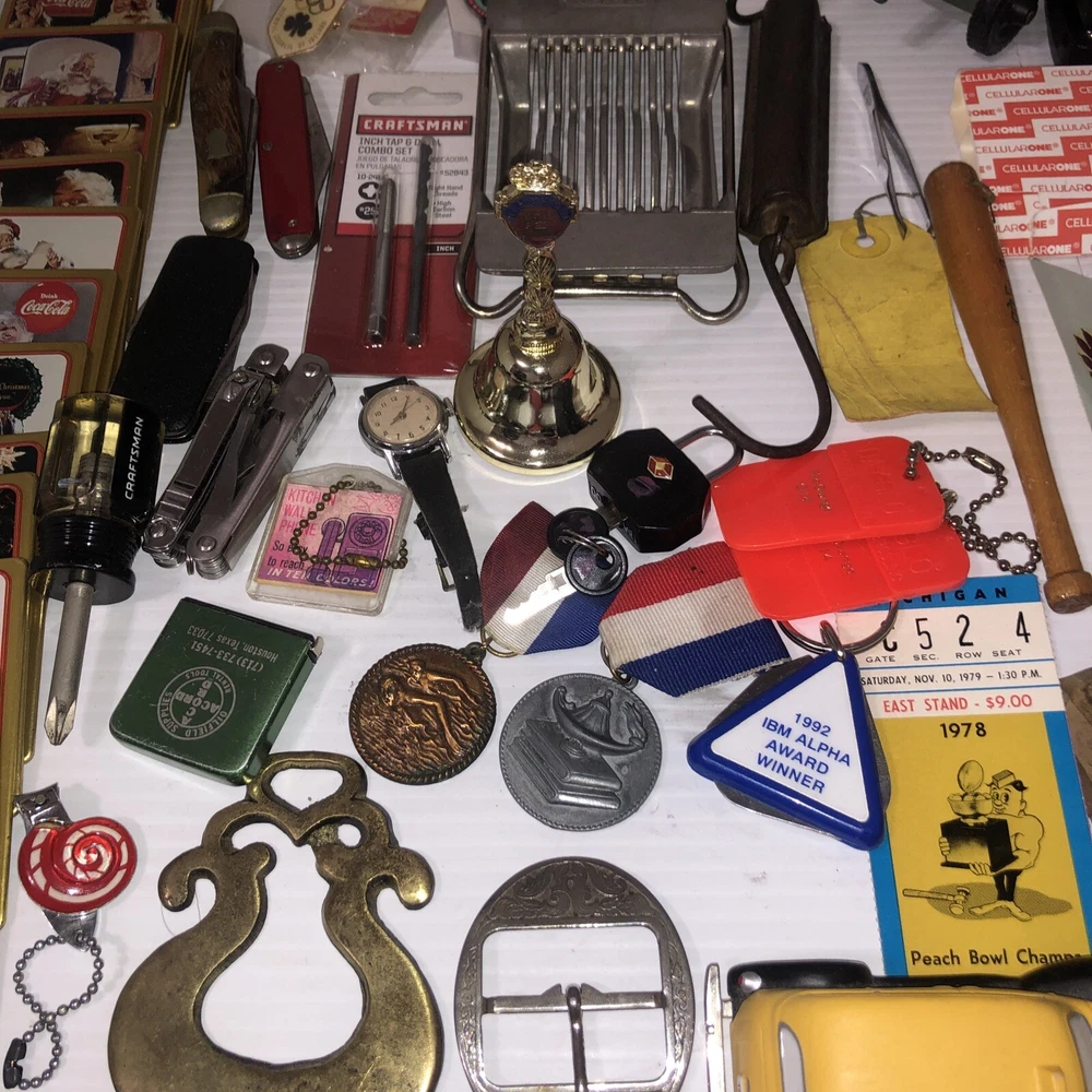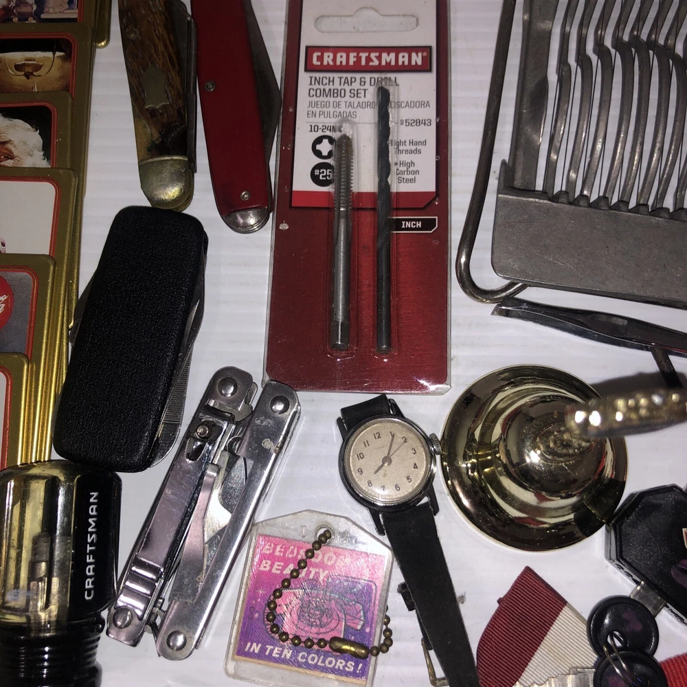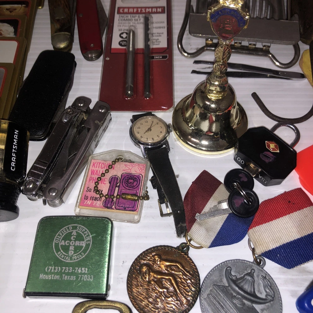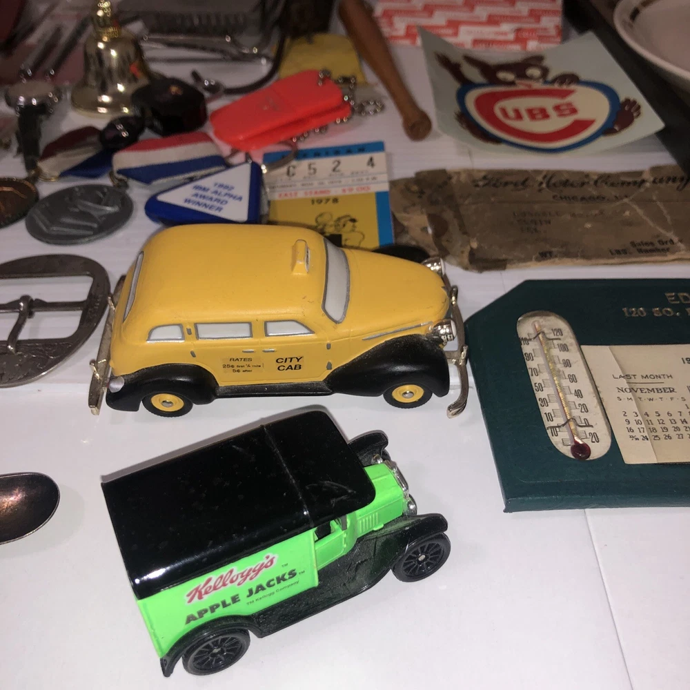 This Junk Drawer Lot of Mixed Vintage Grandpa Items, Politico, and Coca-cola Rare is a must-have for any collector. The lot includes a variety of unique items that will make a great addition to any collection. The Politico items are particularly rare and hard to find, making them a valuable addition to any collection. The Coca-cola items are also hard to find and are sure to be a conversation starter. The grandpa items are perfect for those who love vintage items and want to add some character to their collection.