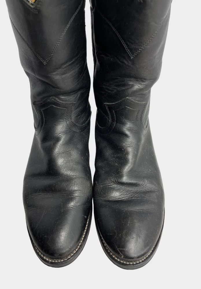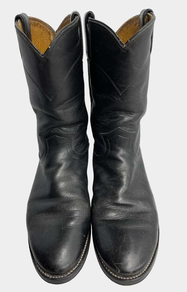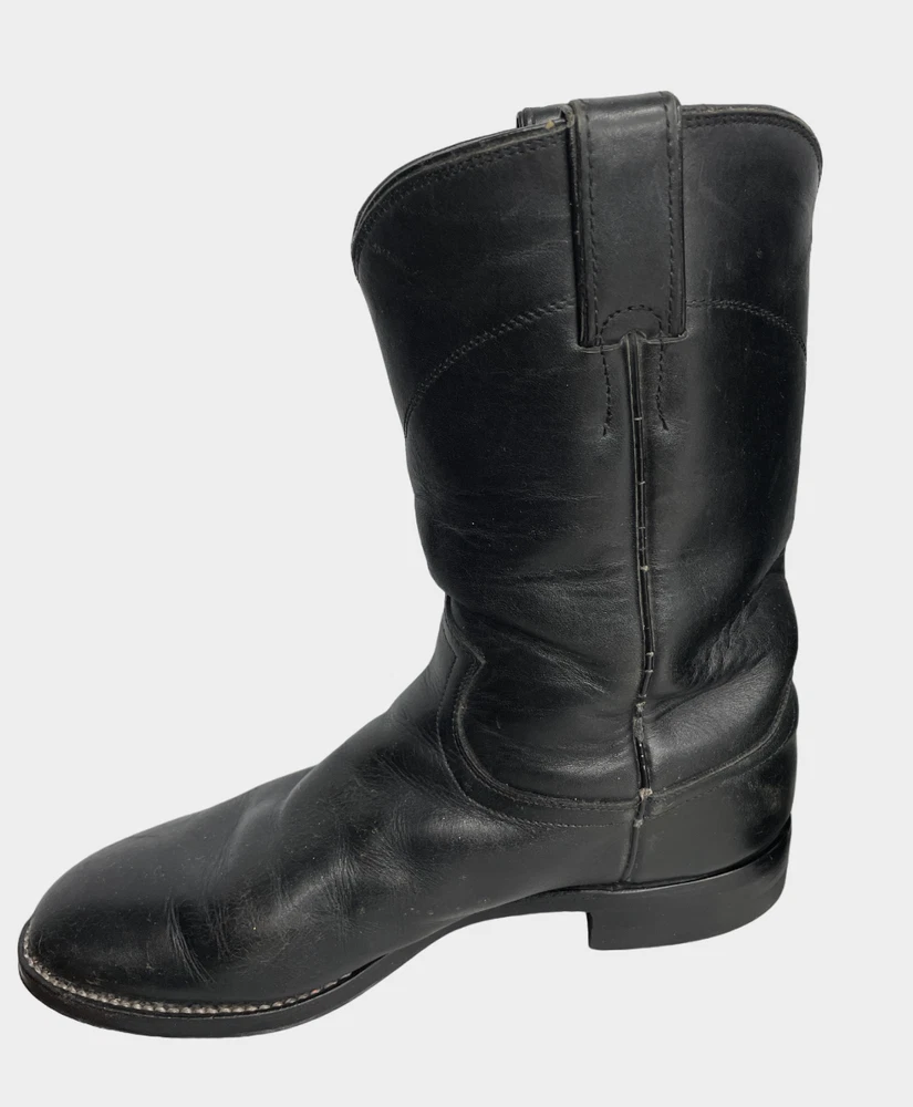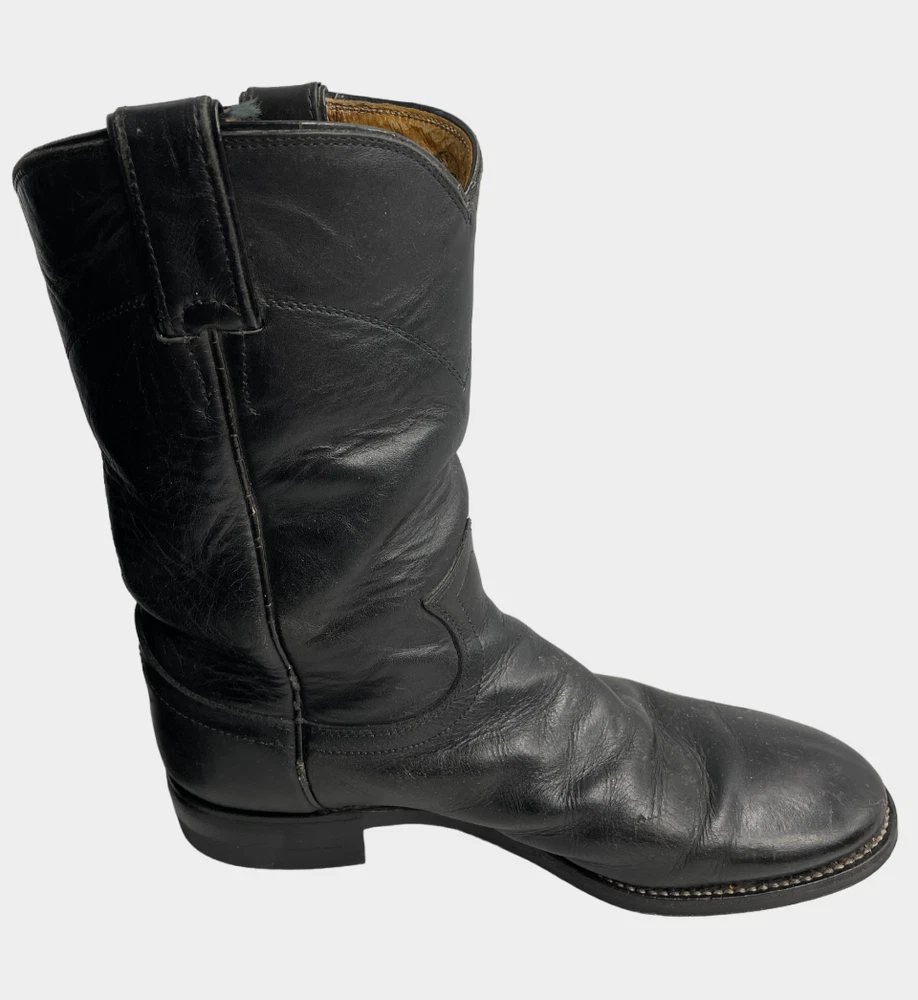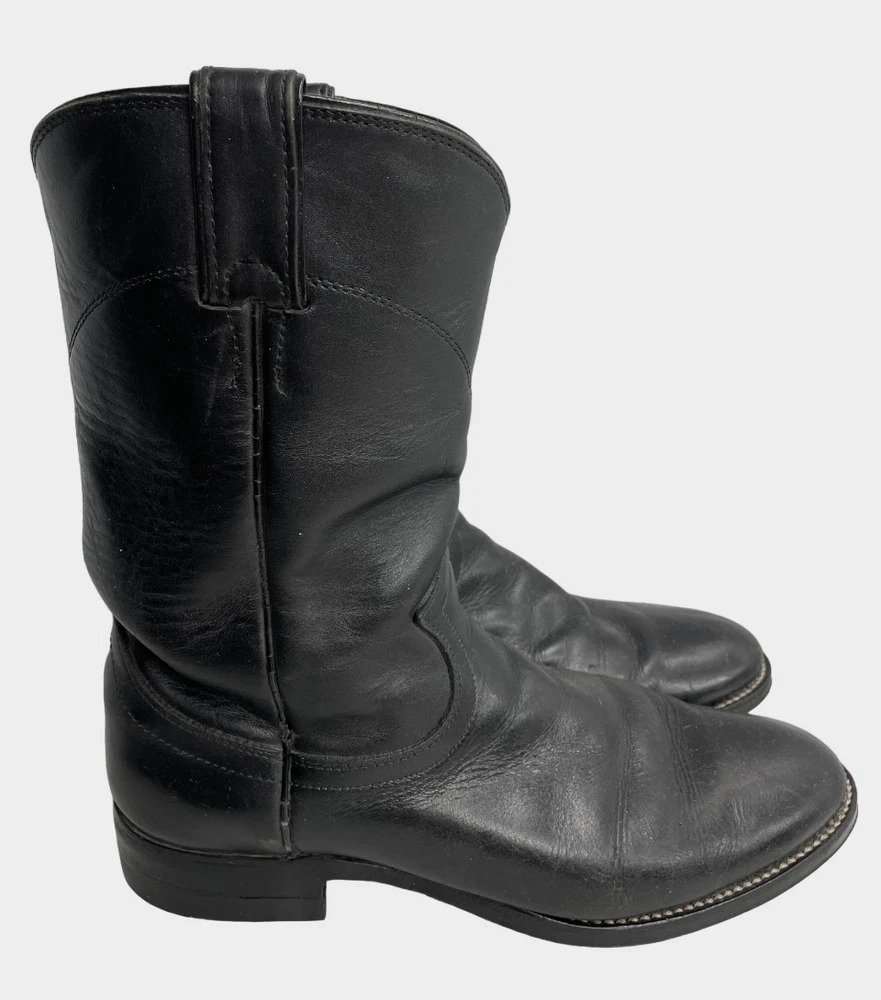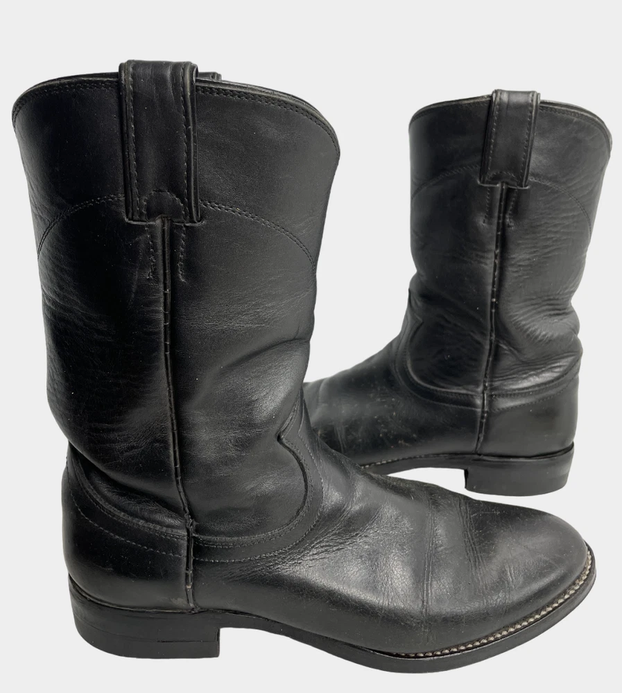 Justin 3133 Black Roper Leather Western Cowboy Biker Boots Men's 6.5 D