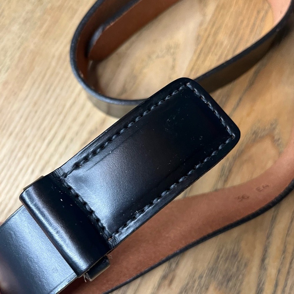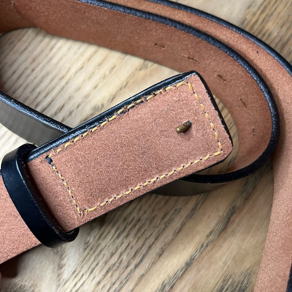 $ 10.56Vintage Laser Cut Wide Leather Belt Black with Brass Buckle 90s Indie Grunge 34