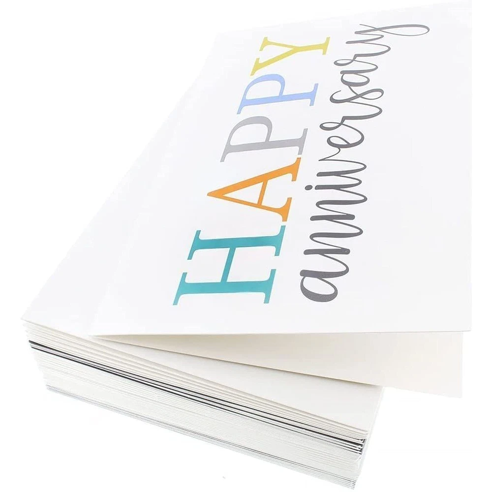 This 36-pack boxed anniversary cards assortment set prepares you for all your card-sending needs! Our greeting cards feature 6 assorted designs and a blank interior for personalized messages. This assortment box is perfect for your significant other, husband, wife, parents, boyfriend, girlfriend, couples, co-workers, boss, and employees. Each 4x6-inch card is printed on high-quality 250 gsm paper card stock. Blank Happy Anniversary Cards: This birthday and anniversary cards assortment features 6 modern-style gender neutral and generic designs in white and brown colors with "Happy Anniversary" lettering on the front Unleash Your Creativity: The blank interior of each card makes our box of anniversary cards with envelopes customizable for any occasion and the ideal choice for couples, married family members, realtors, or as work anniversary cards for employees Durable Material: The bulk anniversary cards with envelopes features cards that are made from 250gsm thick cardstock paper with corresponding 120gsm white v-flap envelopes Dimensions: Each one of our employee anniversary cards measures 4x6 inches; ample space to write customized messages to your significant other or co-worker and tuck a photo or gift card inside Comes With: In our anniversary card pack, you will receive 36 cards in 6 assorted designs with 36 white envelopes, each with its own unique design that will leave a lasting impression on anyone who receives the card
